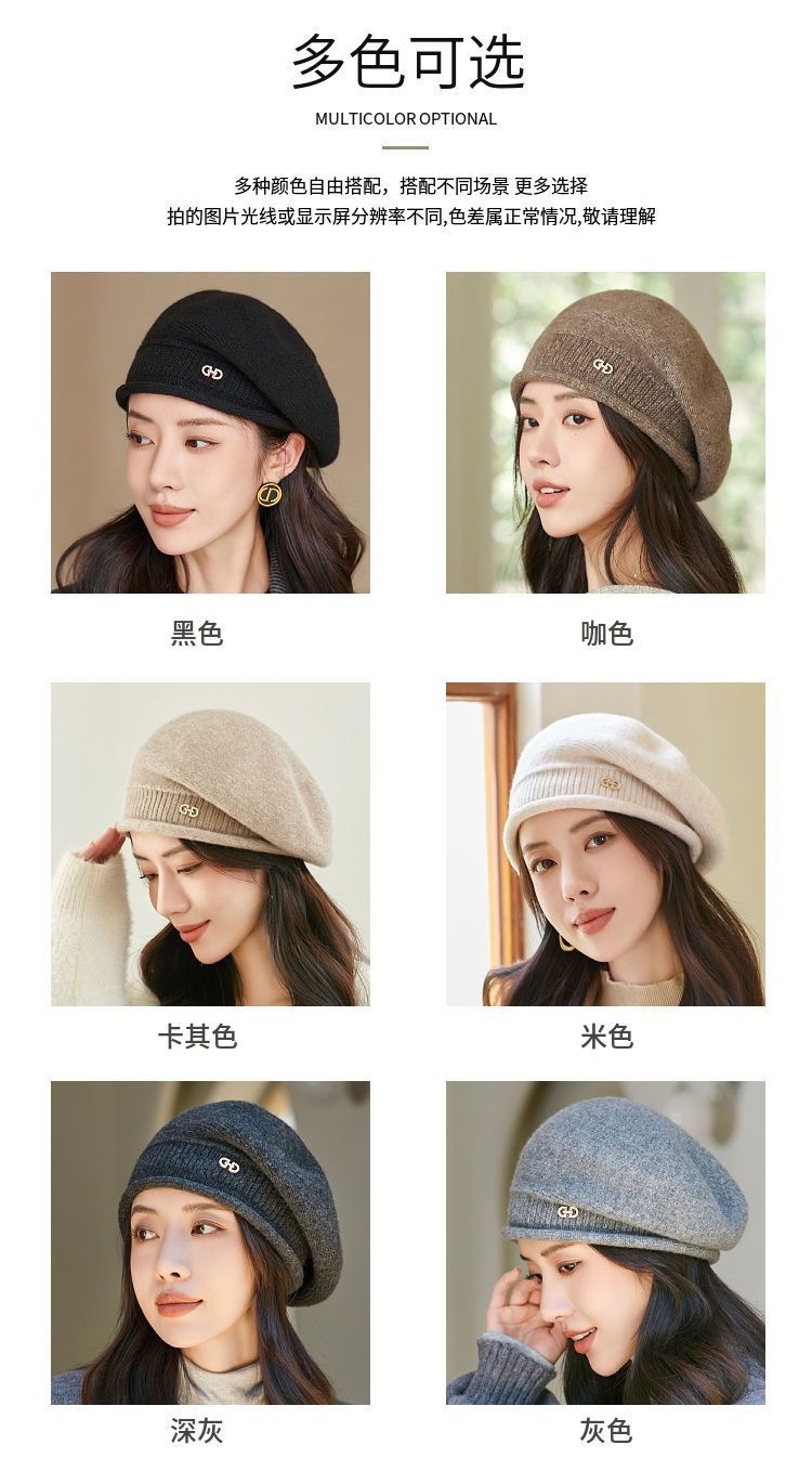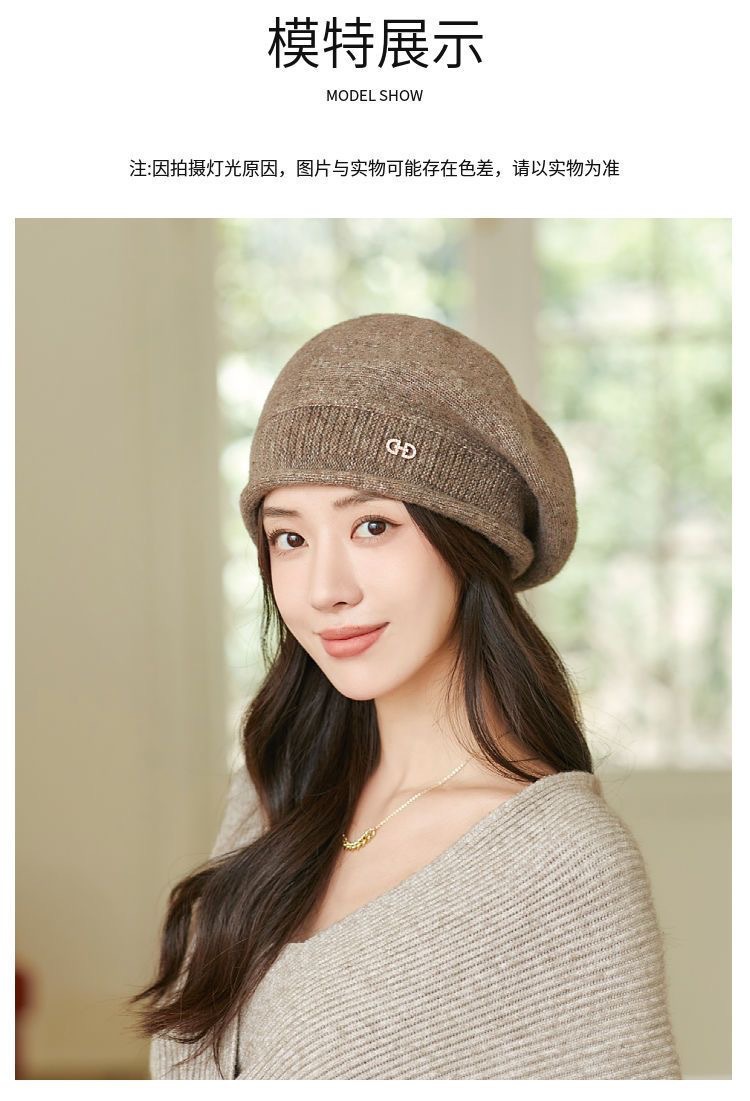 跨境帽子秋冬女贝雷帽时尚百搭保暖针织毛线帽妈妈轻奢风堆堆冷帽