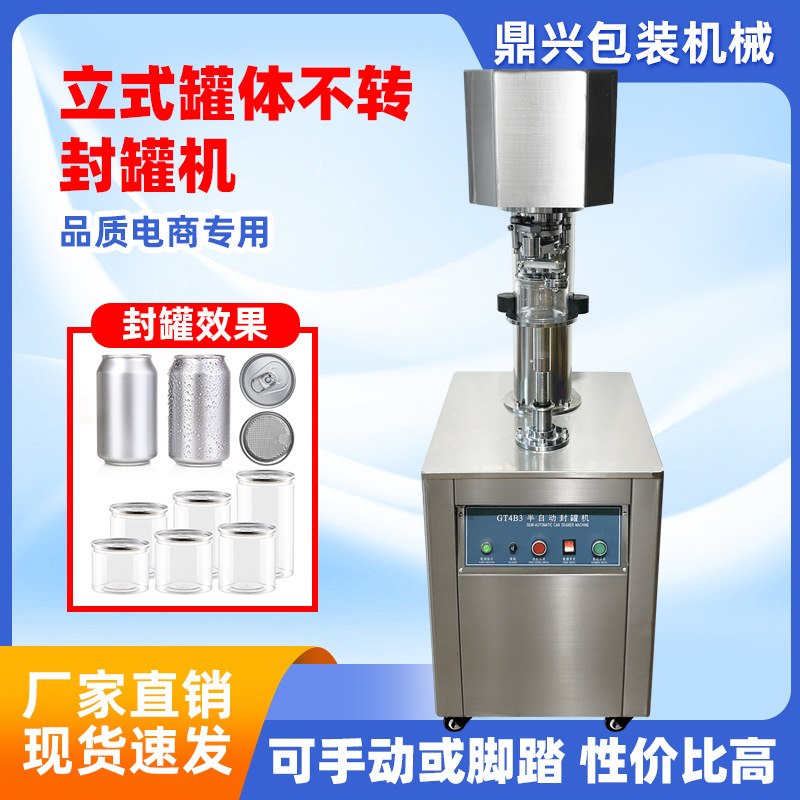 半自動縦型缶シーリング機、ブリキ缶、プラスチック缶、鉄缶、非回転式圧着キャップ、電動缶シーリング機