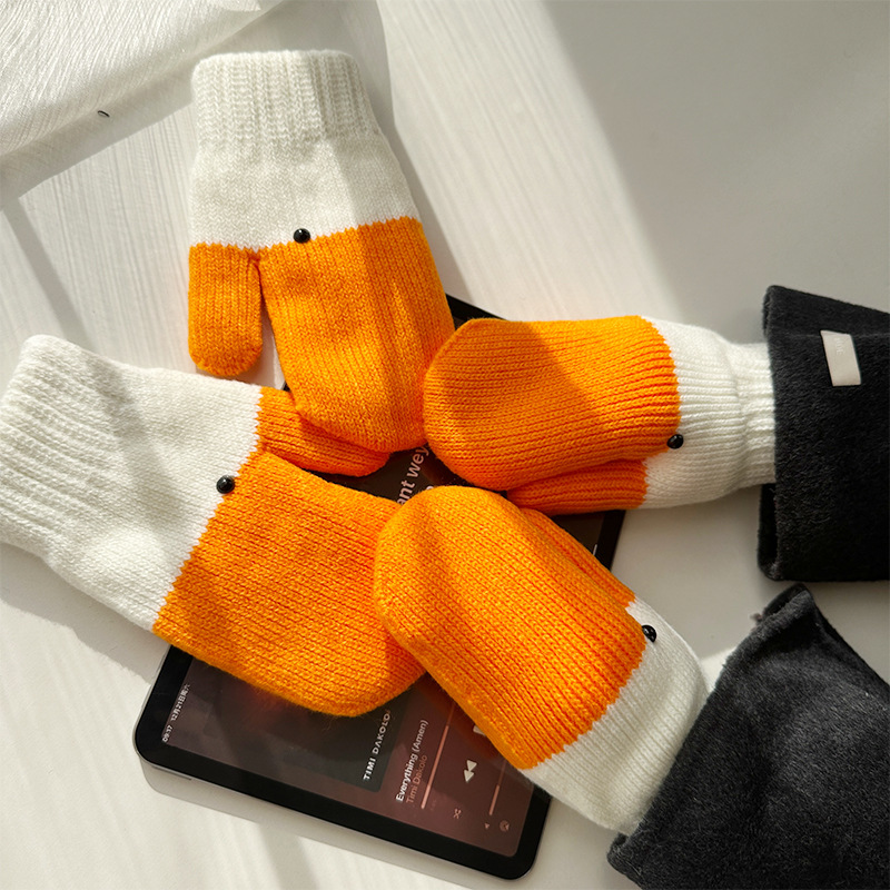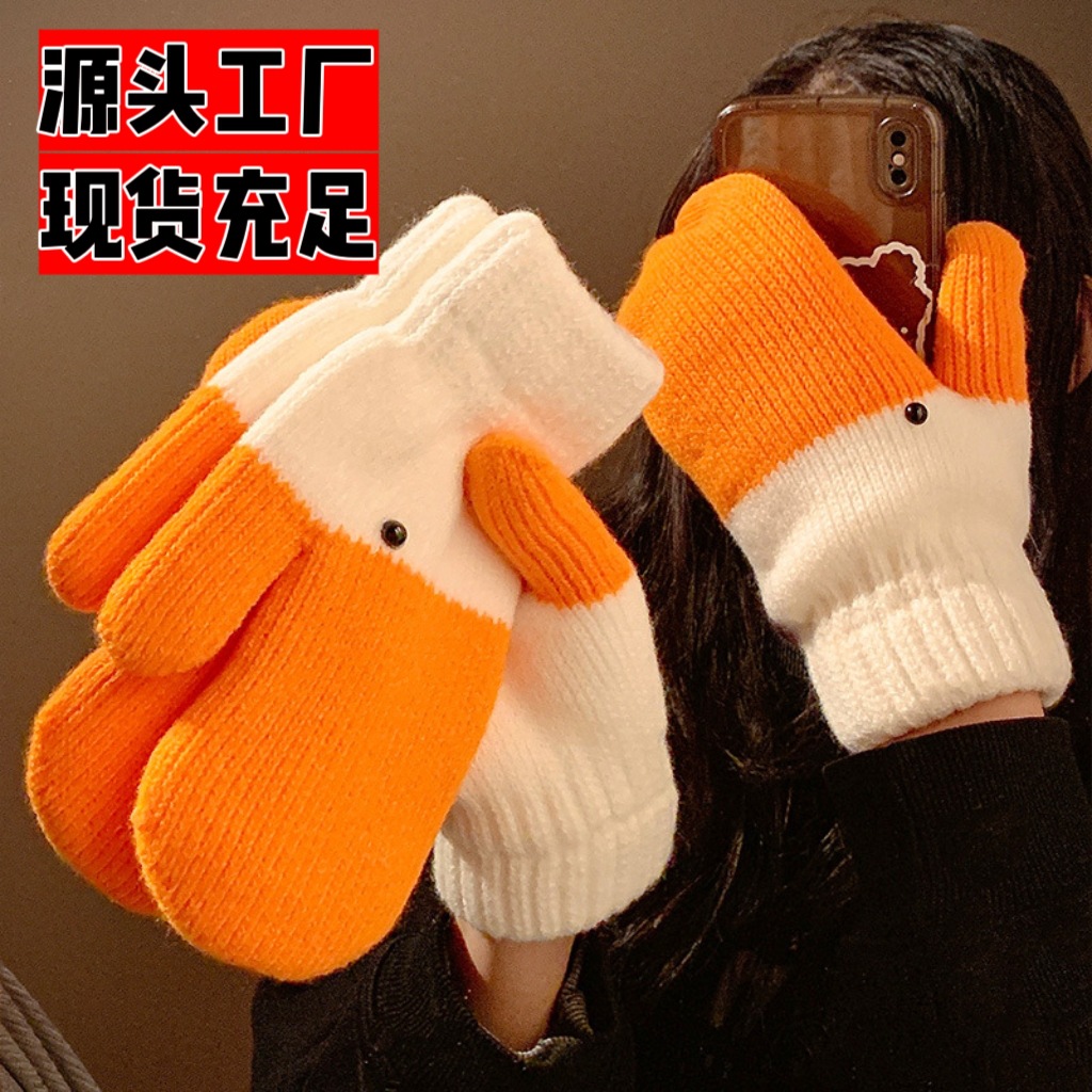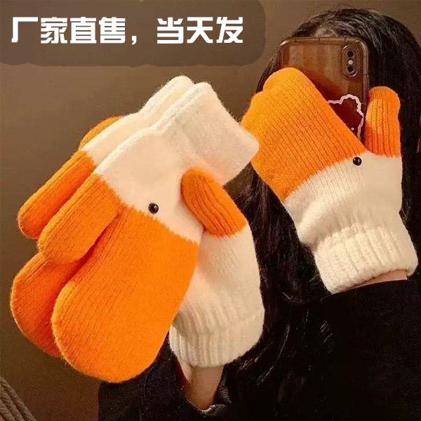 加绒加厚防寒学生创意搞怪大鹅毛线连指手套女秋冬季保暖御寒