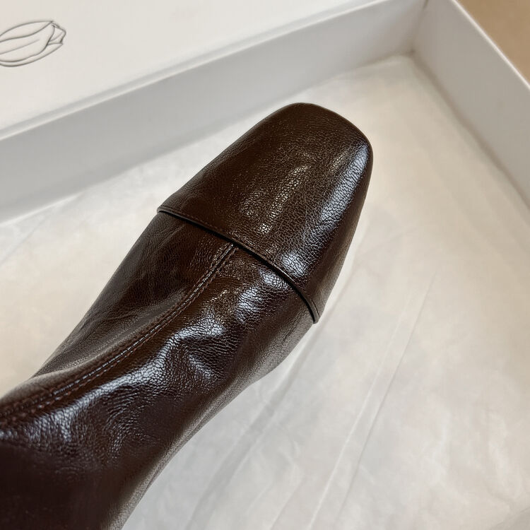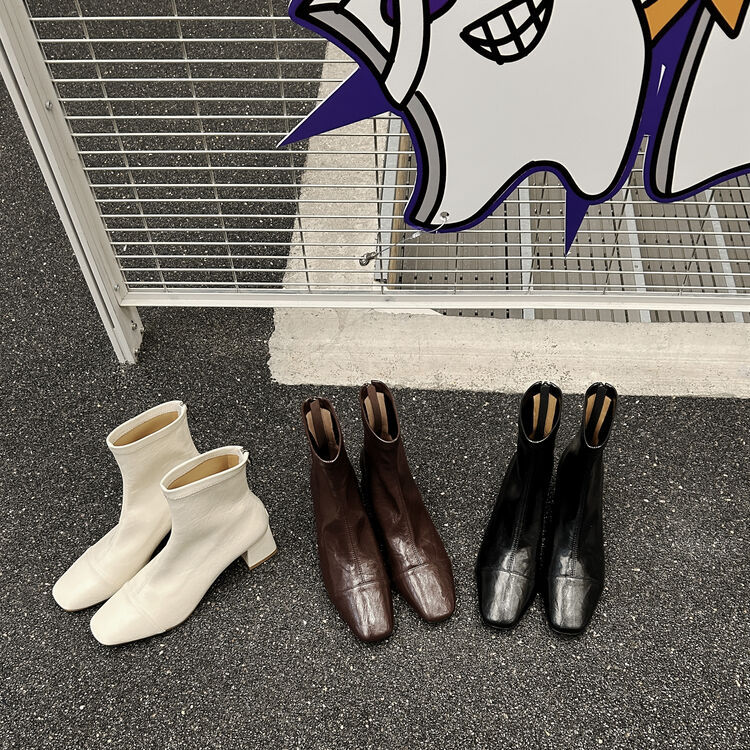 本革の角のショートブーツの女性と裸の靴の秋冬の新商品の韓国版の全皮の後のファスナーの低いです。