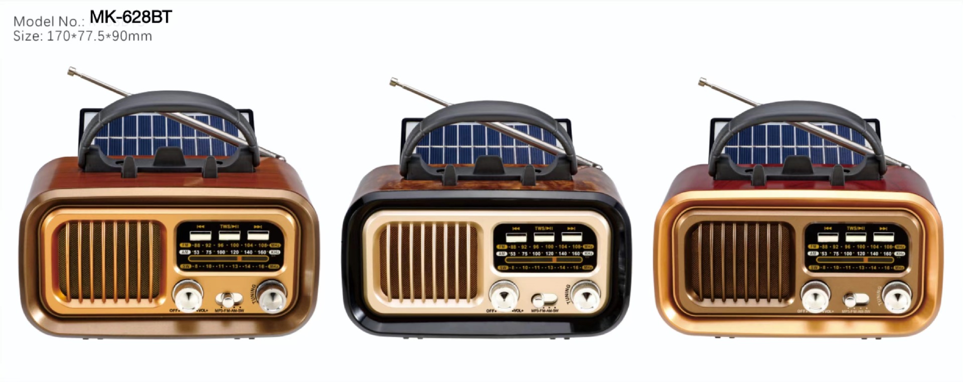 厂家销售多波段便携式太阳能充电调频插卡蓝牙应急收音机