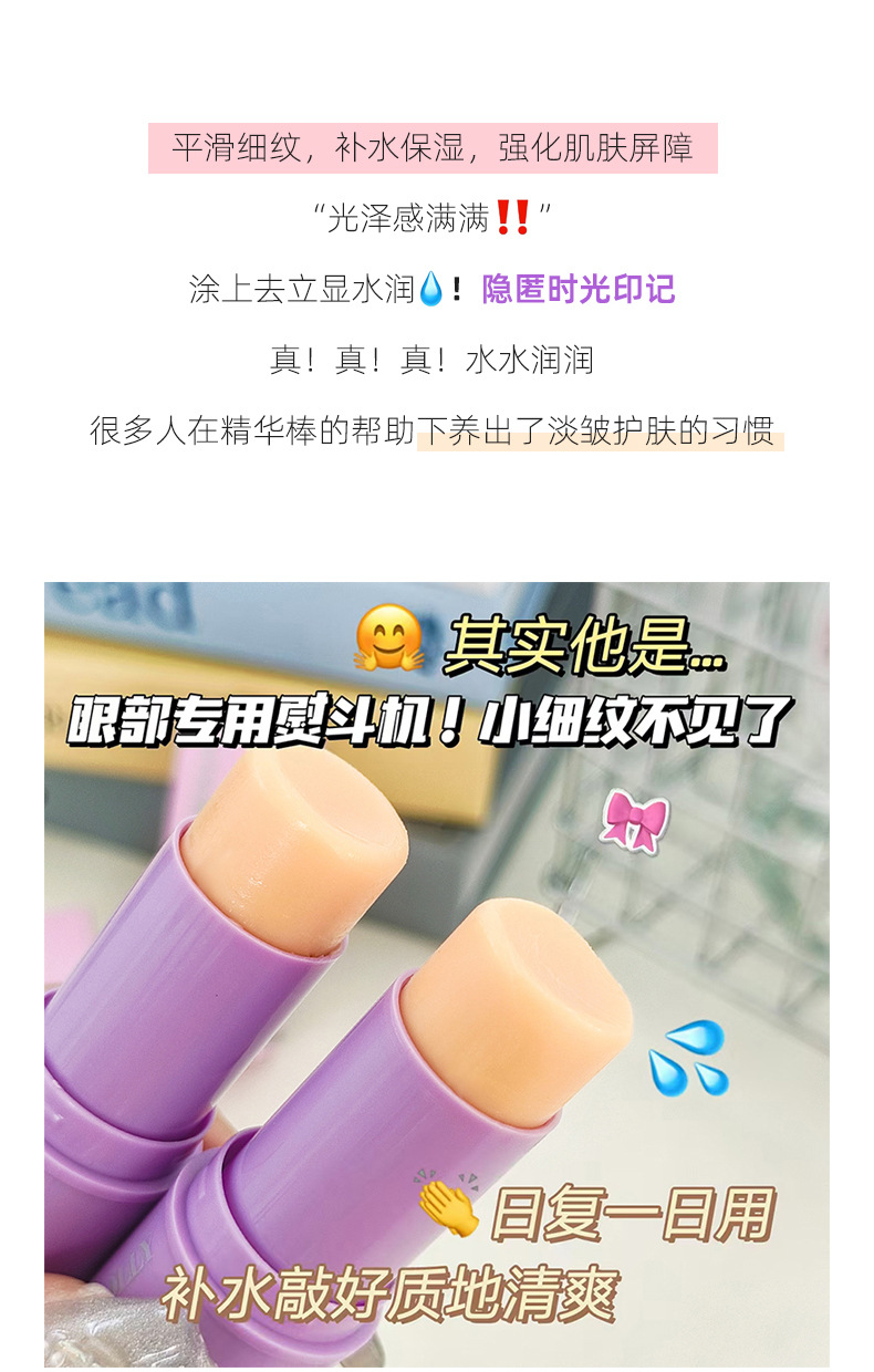 正品の紫棒はしわに抵抗して水光肌を潤して保湿して目の首の細い紋様を改善して水の精華の棒を補います。