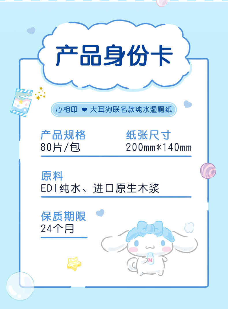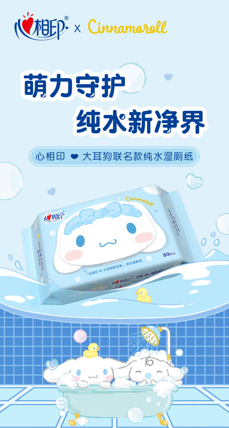 心相印の濡れたトイレットペーパーの大きい耳の犬の80枚の箱の全体の厚い便器の専用の蓋が付いています。