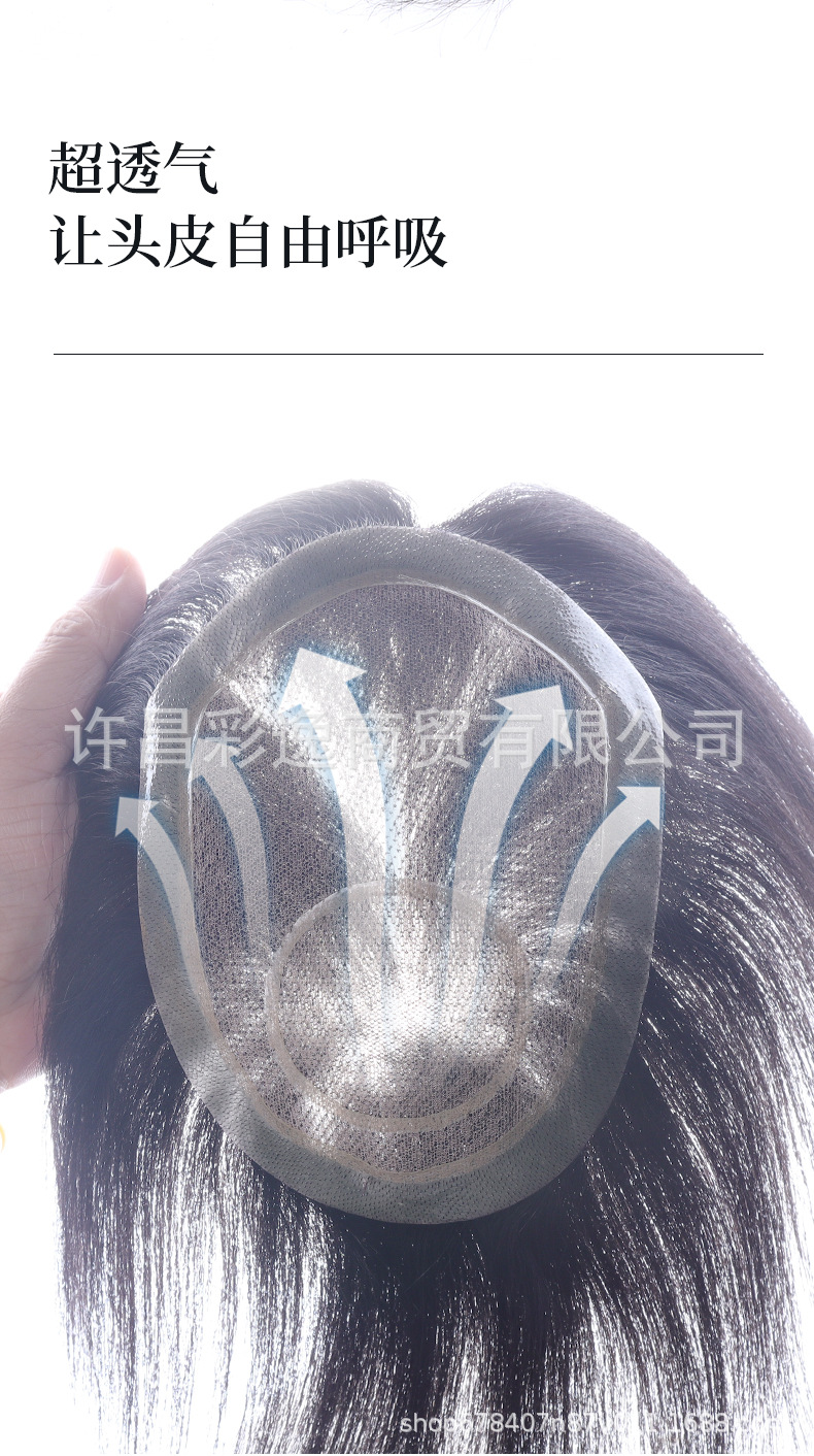薄っぺらになって見えなくなった生物の頭皮の髪の線はすべて手で針を渡してドイツの糸の男性のかつらの頭の上をアップグレードします。