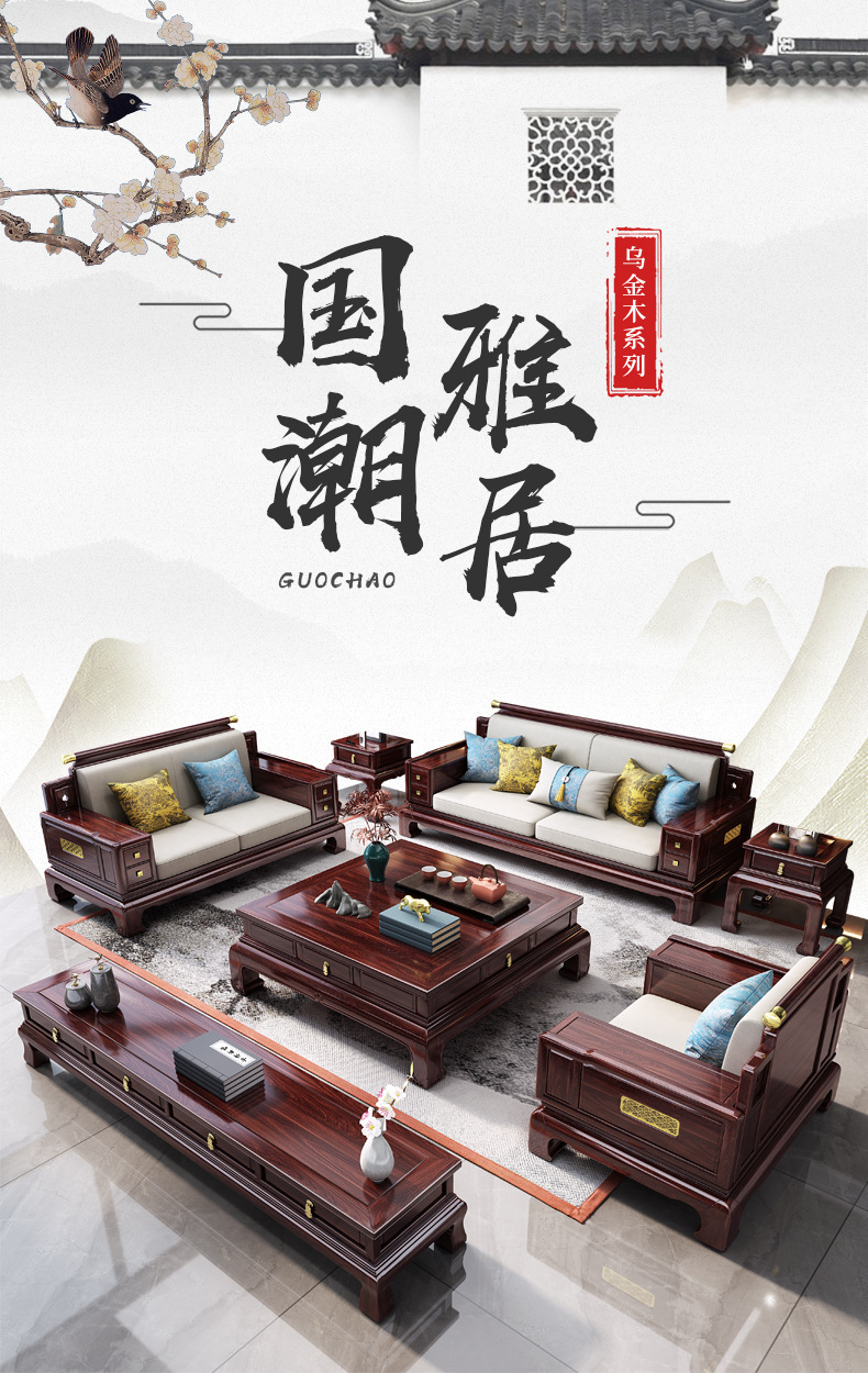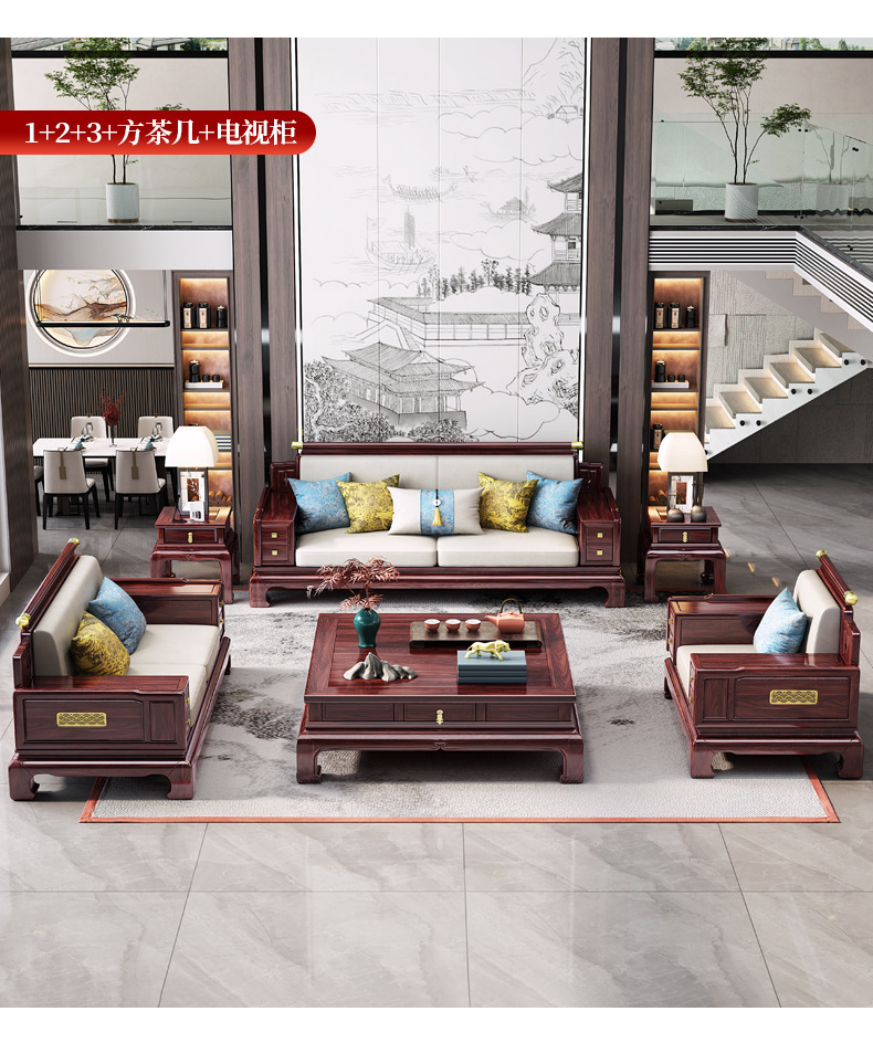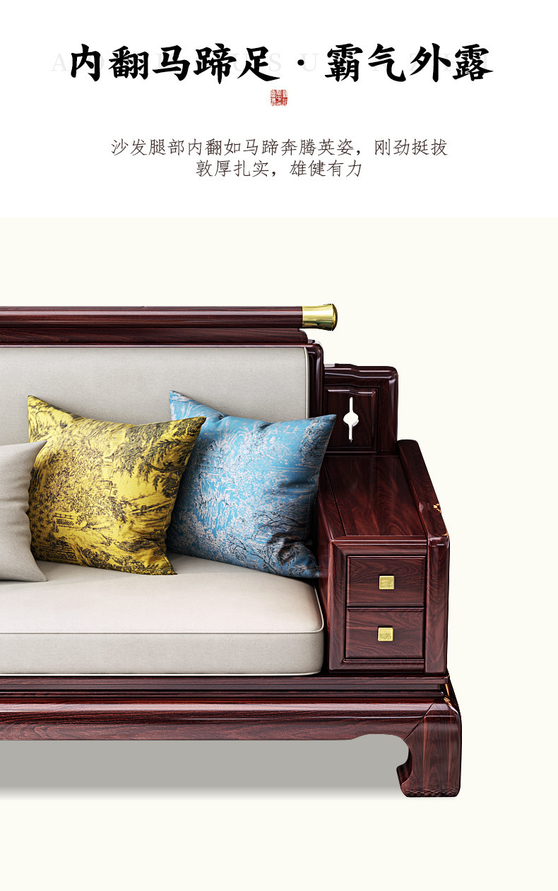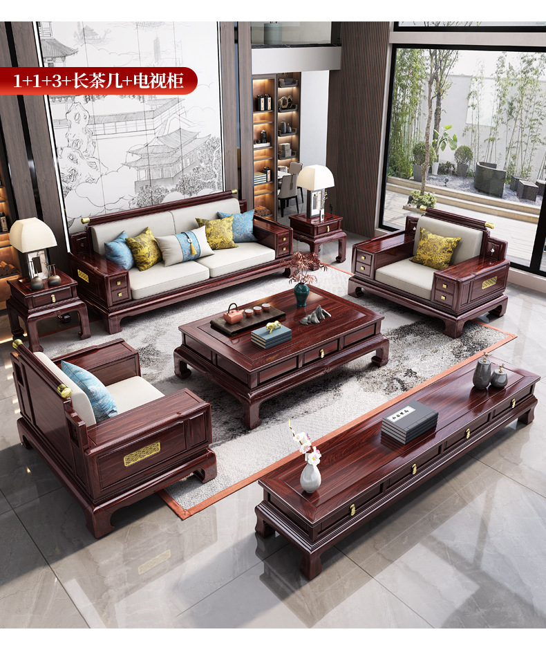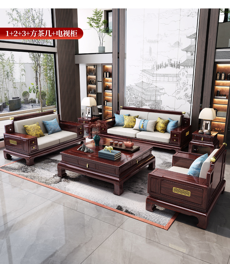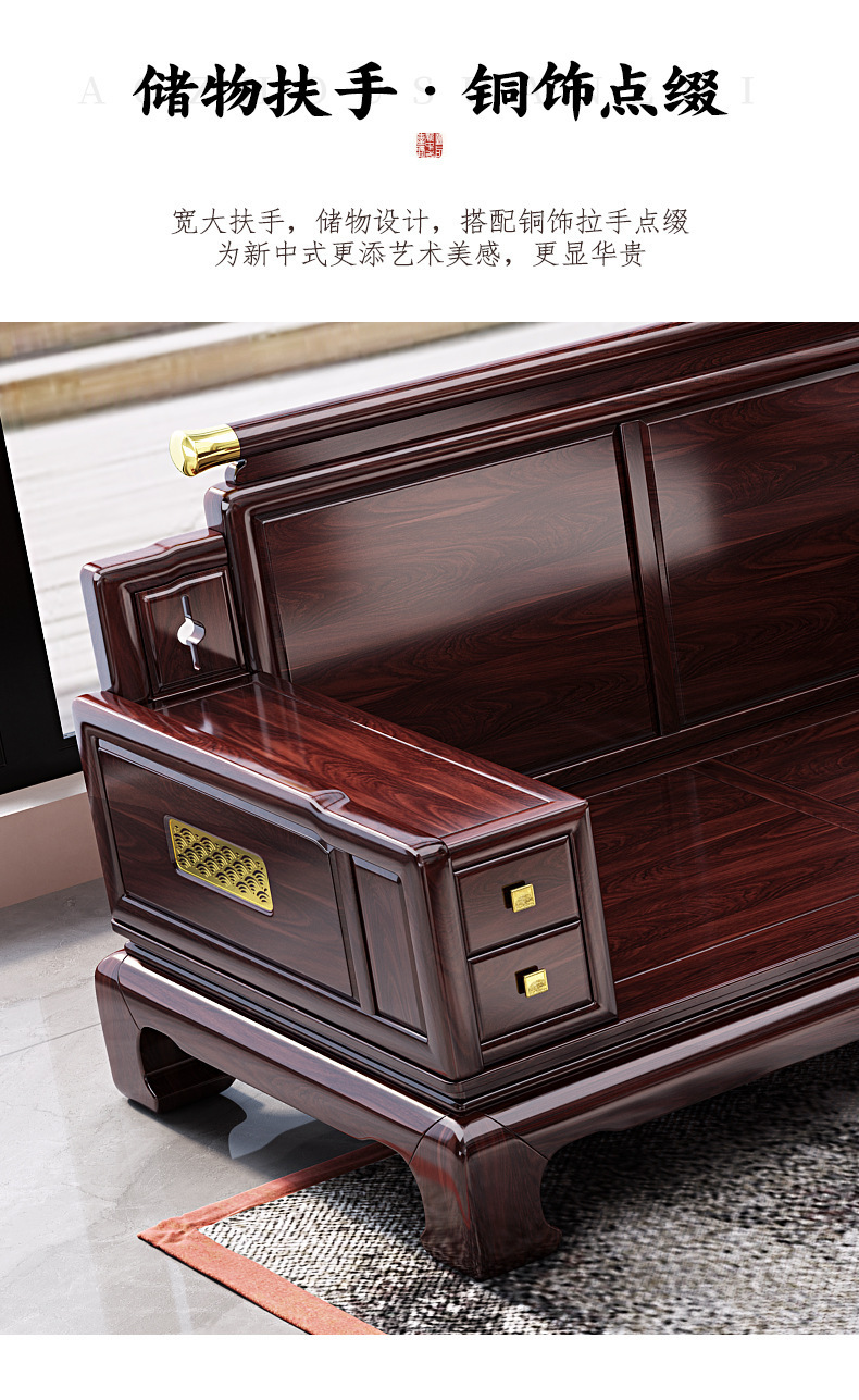 新中式黒檀無垢材ソファセット 冬夏兼用 軽奢風リビング 大小サイズ対応 貴妃型収納ソファ