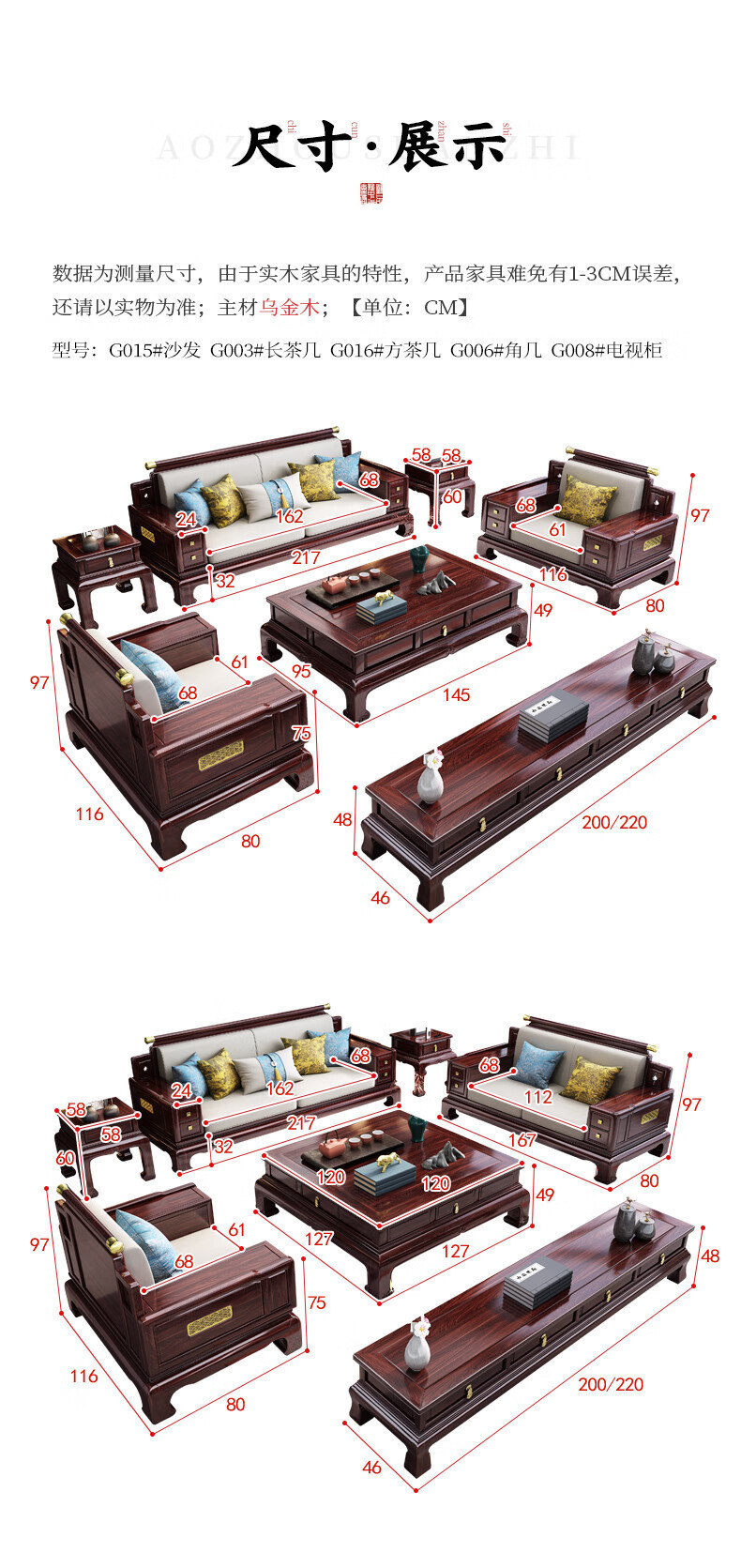 新中国式烏金木全実木ソファー茶数組冬夏両用軽豪華別荘大戸型貴妃ソファー