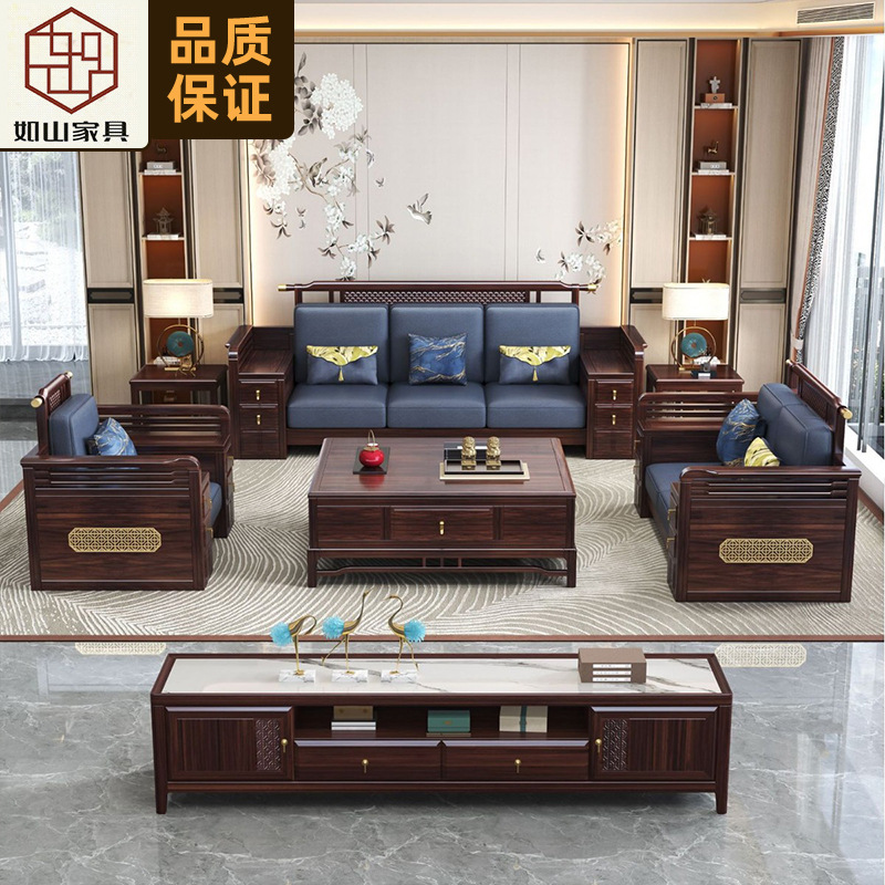 新中国式烏金木実木ソファー古典軽豪華客間大戸型ソフトソファー冬夏両用木ソファー