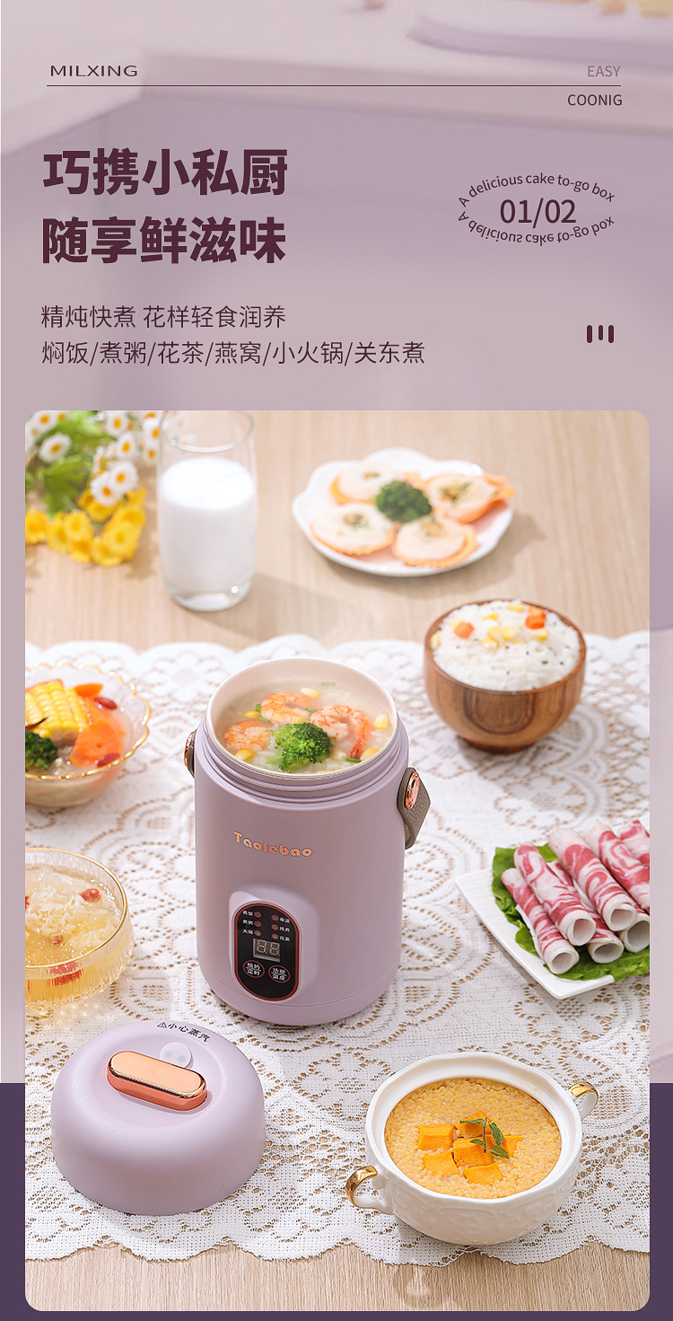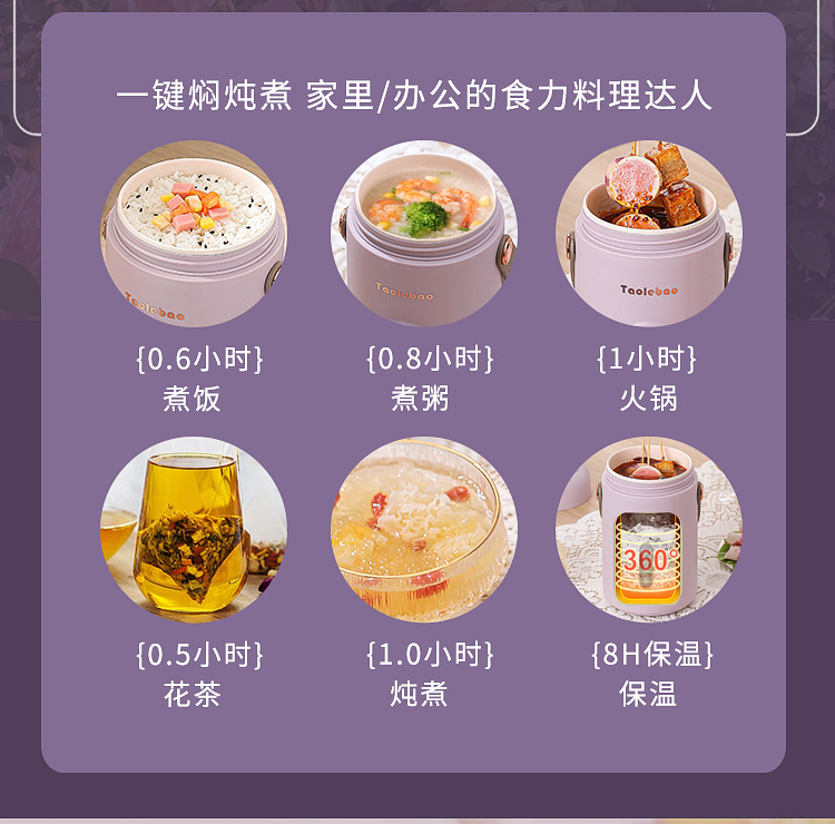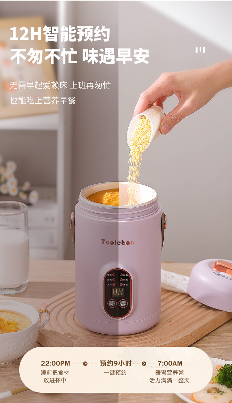 スマート電気シチュー鍋携帯スープ煮粥保温桶家庭予約補助食品電気シチューカップオフィス電気シチューカップ