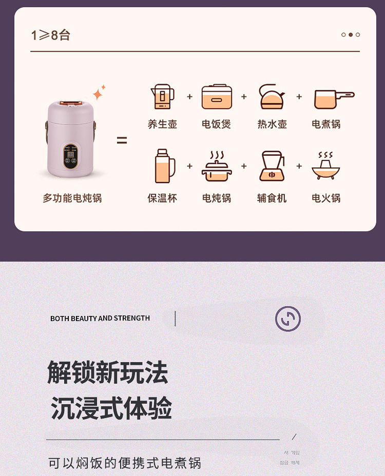 家用多功能辅食锅上班族便携煲汤煮粥小型电煮锅迷你电炖杯 跨境