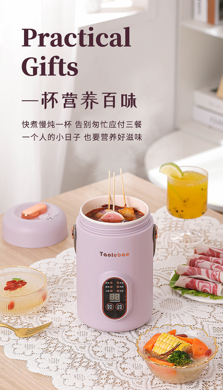 スマートで持ち運び可能な小型電気調理カップ、オフィスで粥やスープを調理できる多機能電気調理カップ、予約タイマー付き電気調理鍋