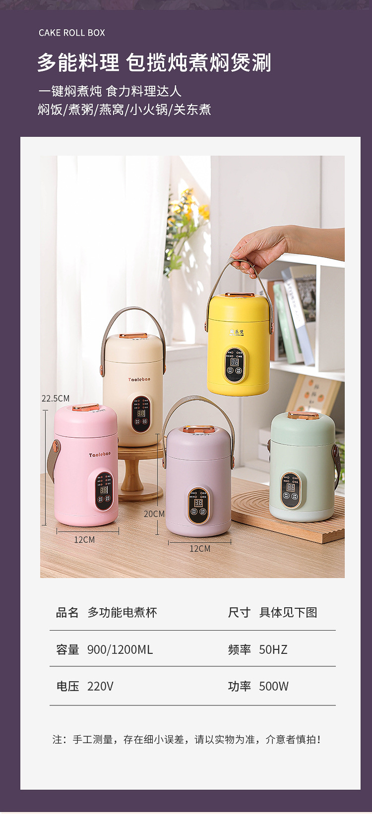 持ち運び可能な健康電気鍋、ハンドル付きミニ小型電気鍋、多機能家庭用スマートスープ電気鍋