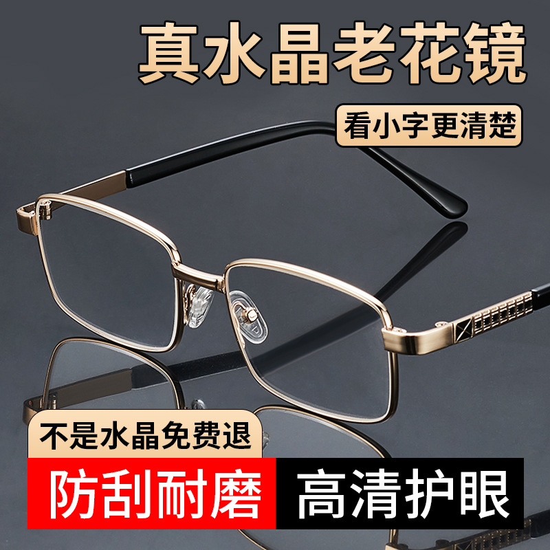 新款高档天然水晶玻璃老花镜男老人老花眼镜女高清男士老光镜正品