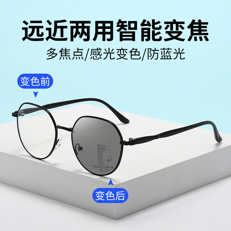 新型変色老眼鏡多焦点ブルーレイ防止老人眼鏡自動調節度数遠近両用読書鏡