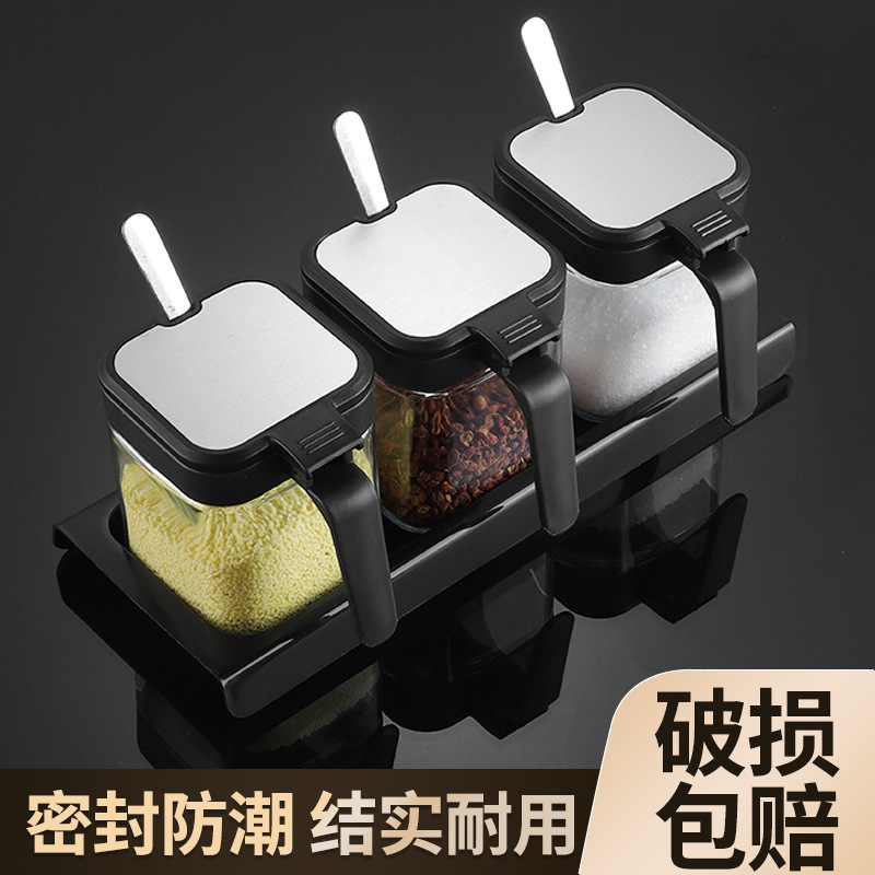 キッチンガラス調味料入れスプーン一体型調味料ボトルオイルポット密封塩入れセット調味料密封防湿