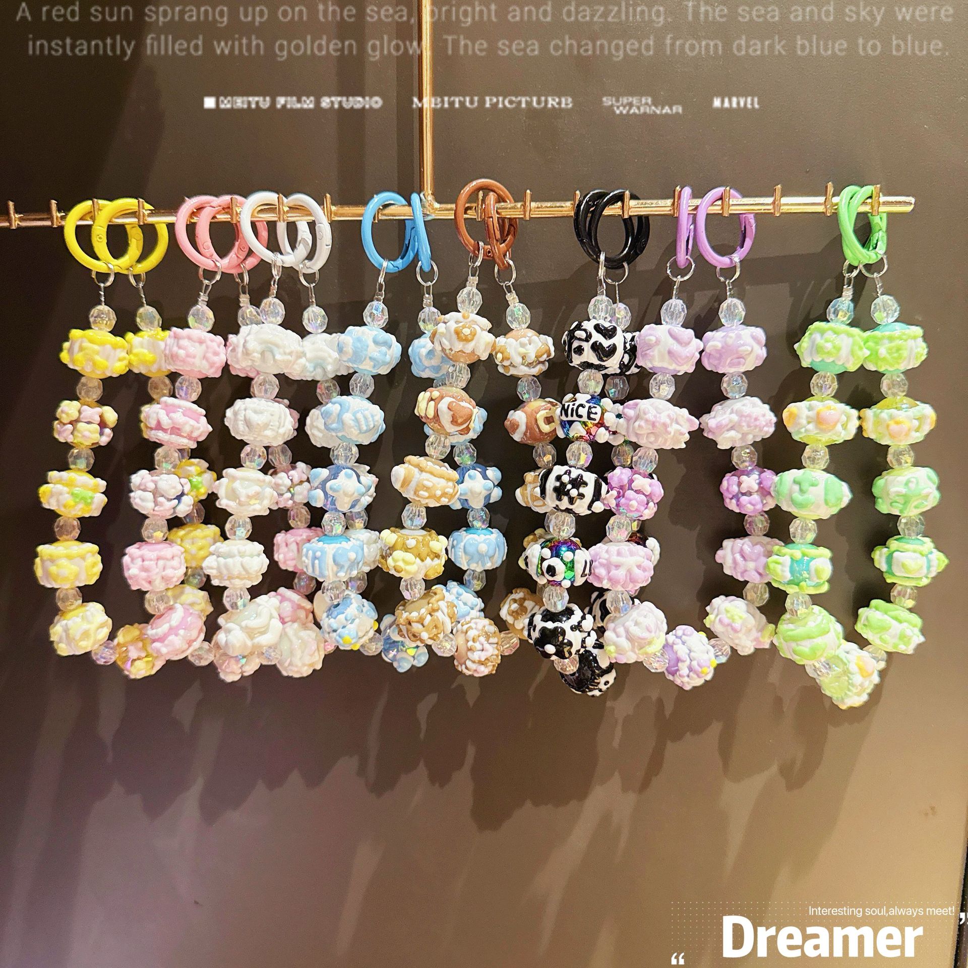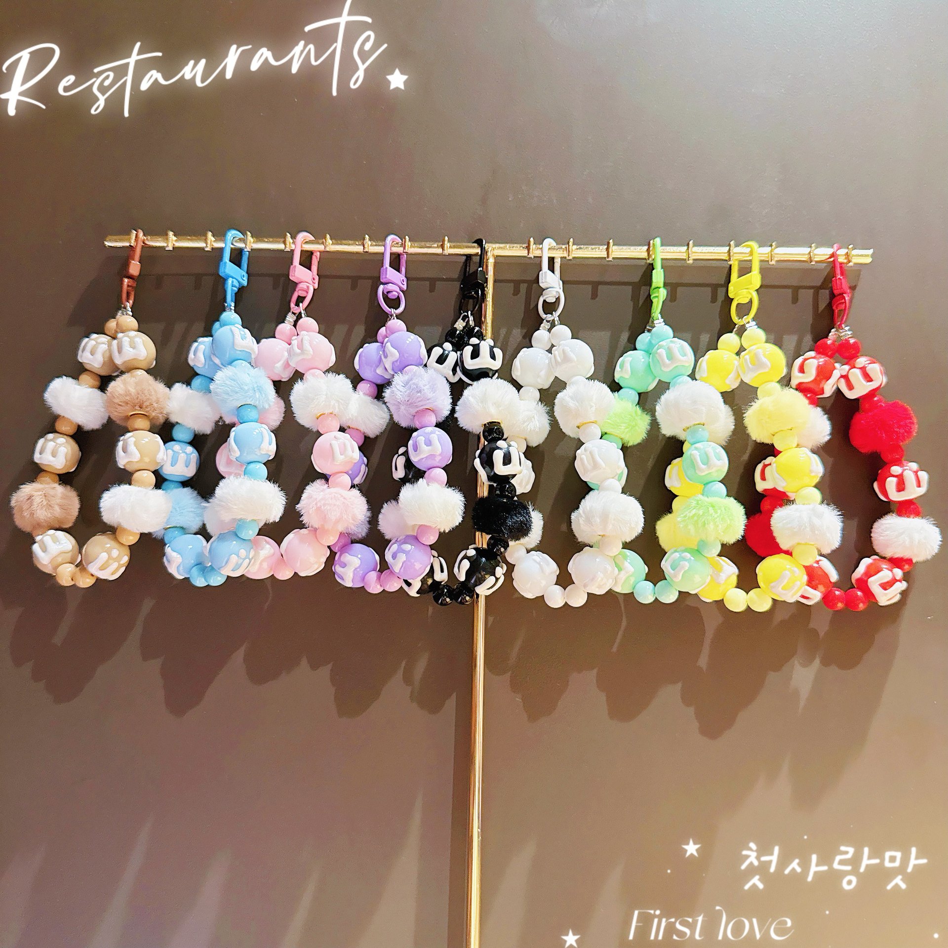 秋冬新款奶酪方块串珠手机链创意毛球包包挂饰手绘珠钥匙扣批发