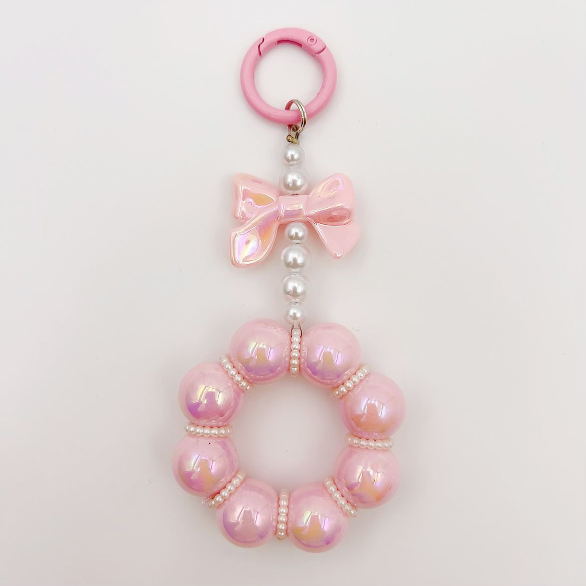 新アクリルキーホルダー双彩珠中珠花携帯チェーンビーズ