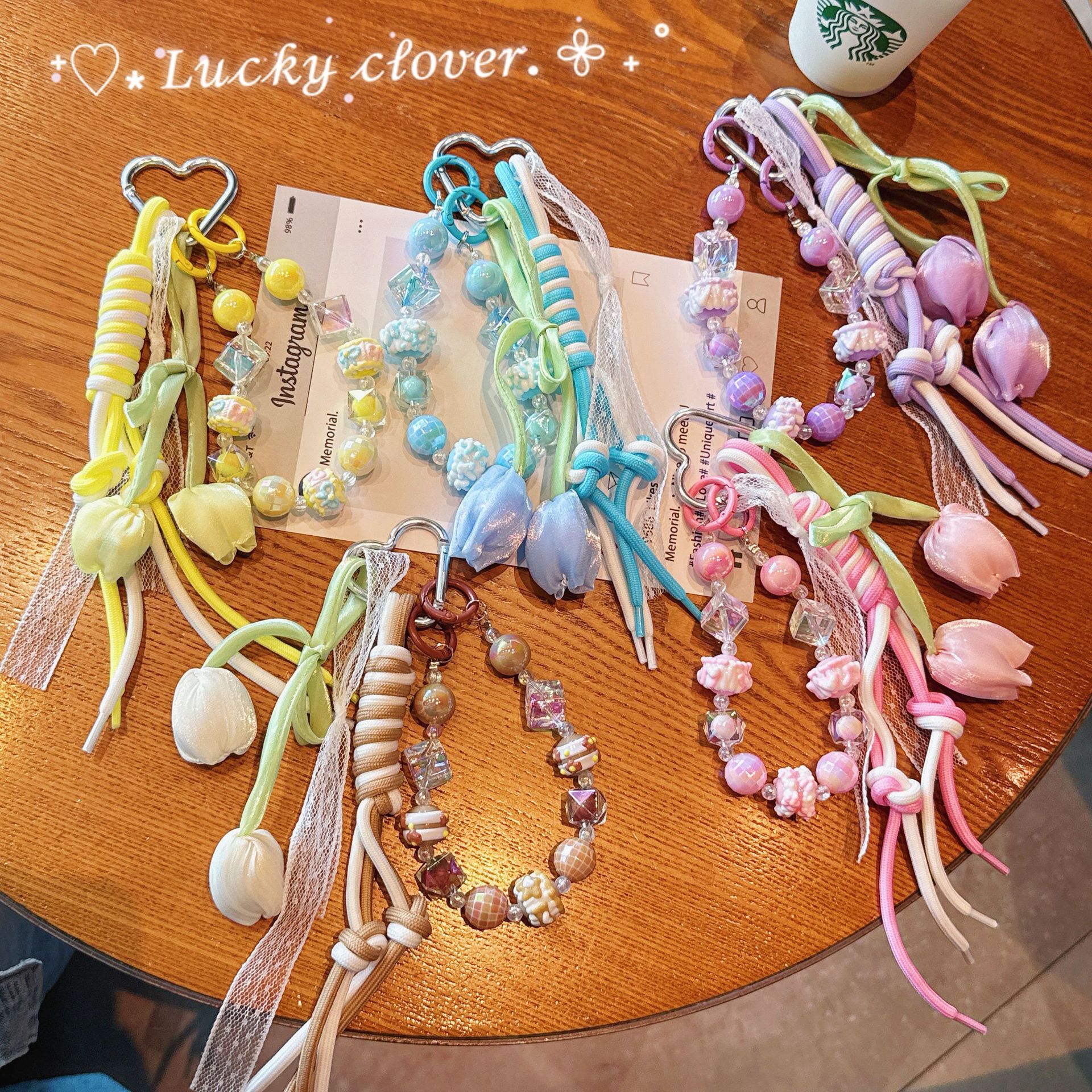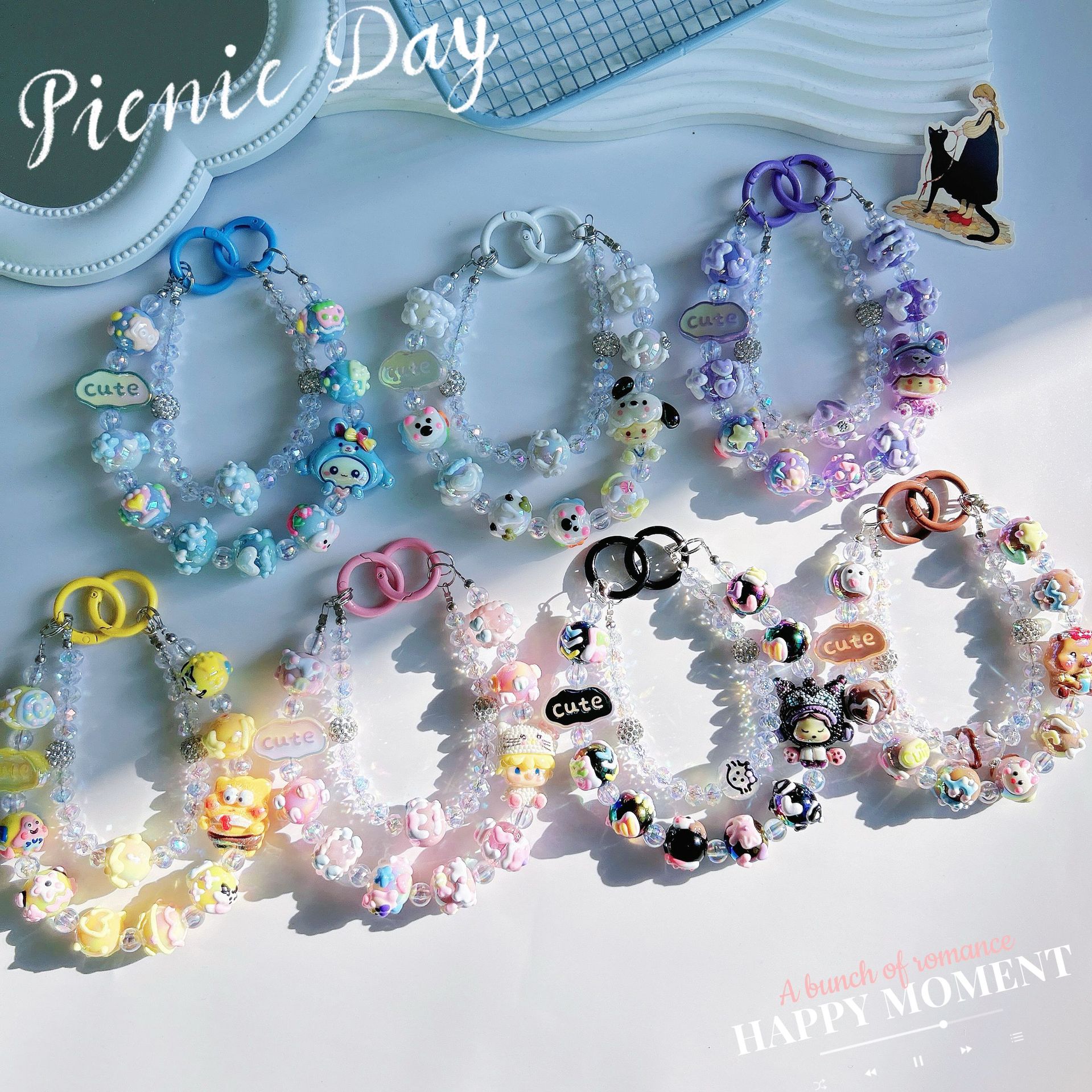 新款手绘珠串珠卡通公仔手机链直播间手机挂件背夹盲盒钥匙链挂饰