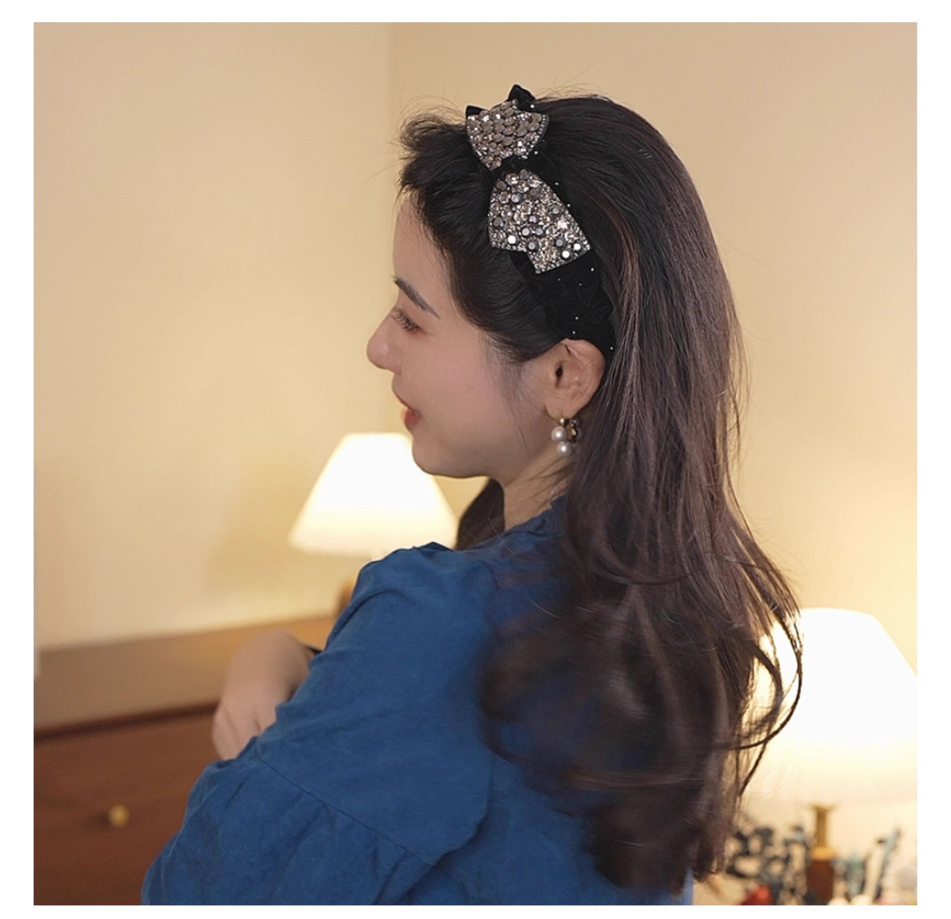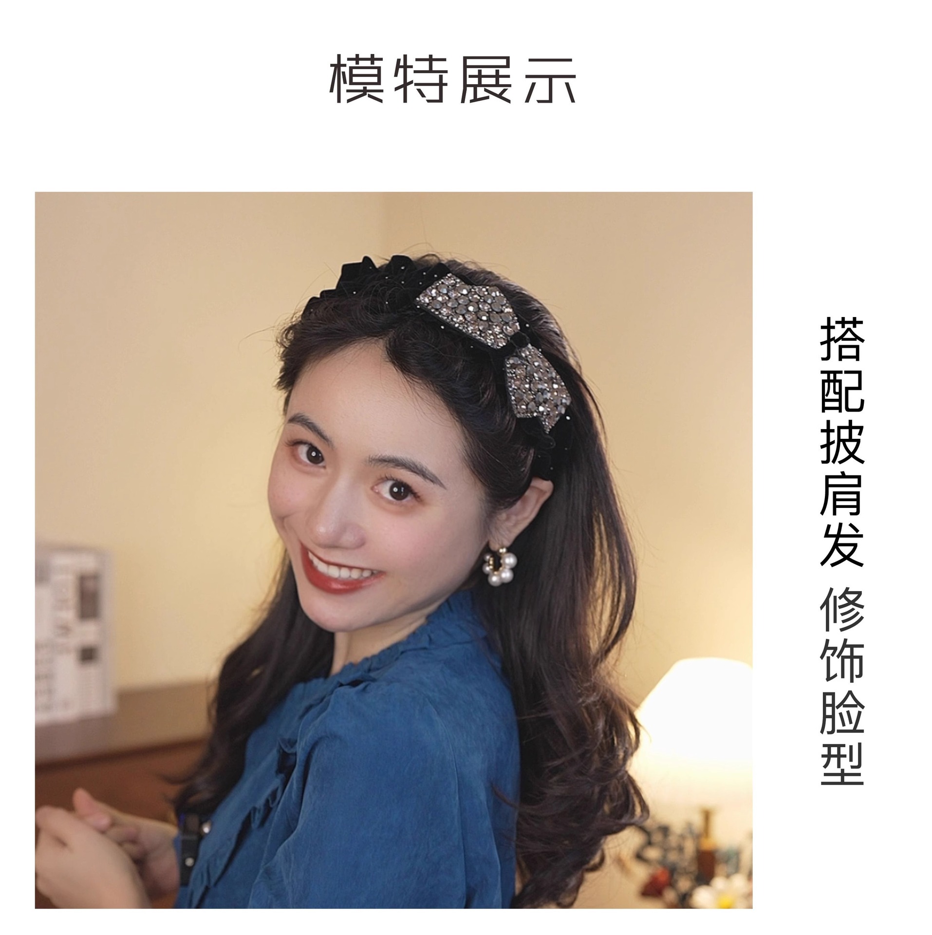 宽边黑色丝绒大蝴蝶结韩国复古重工发箍女高颅顶头饰发饰高级感