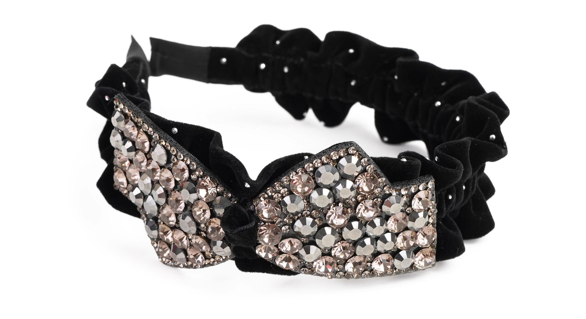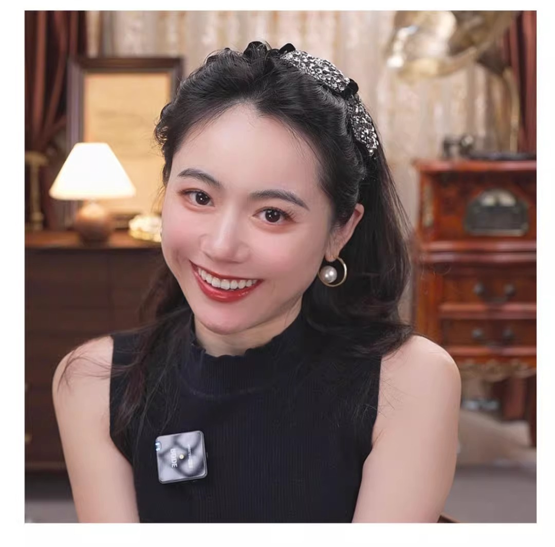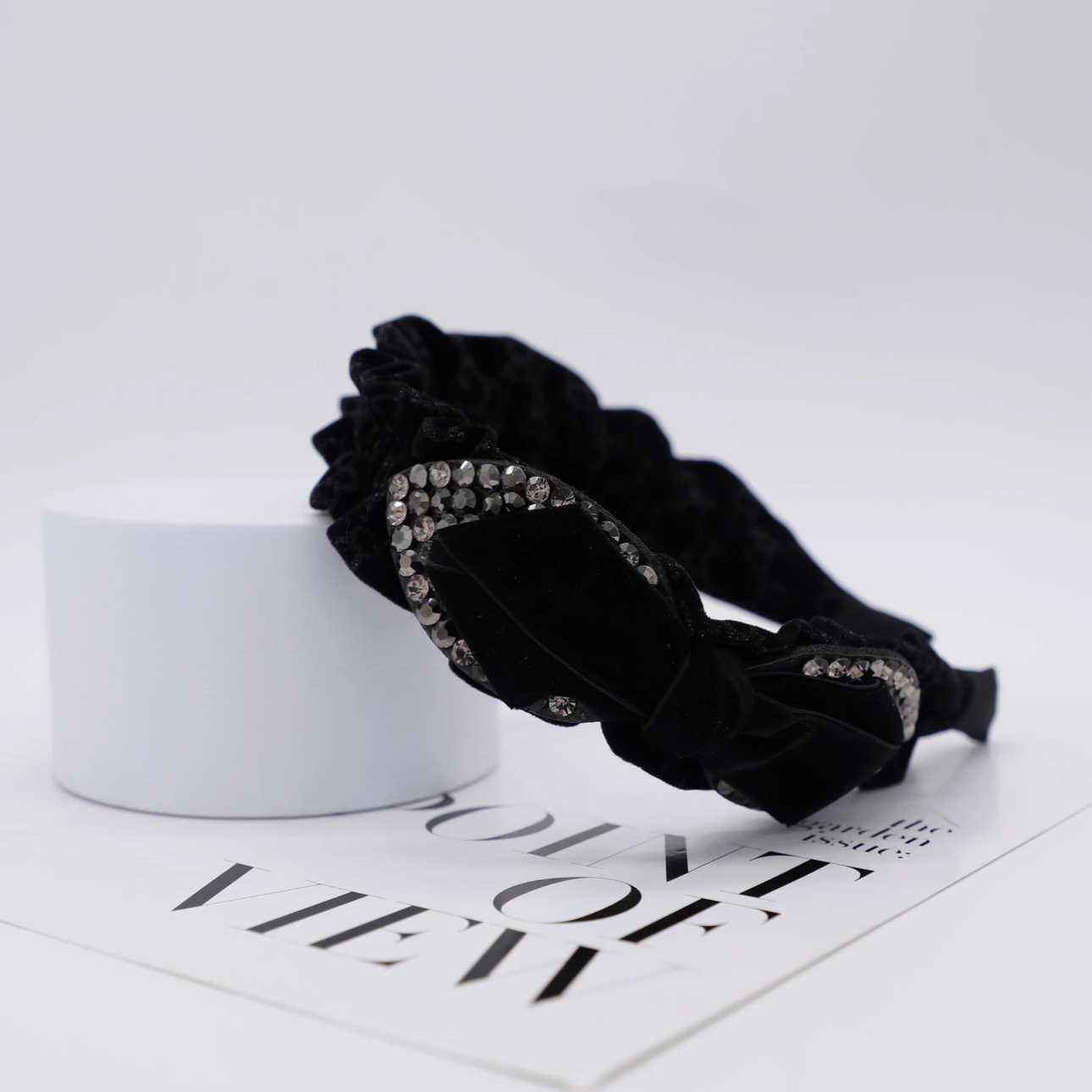 春夏のカチューシャの高い首のトップの女性の日常の外は新型の欧根の紗をつけて黒色の水晶の髪飾りの高級感を編みます。