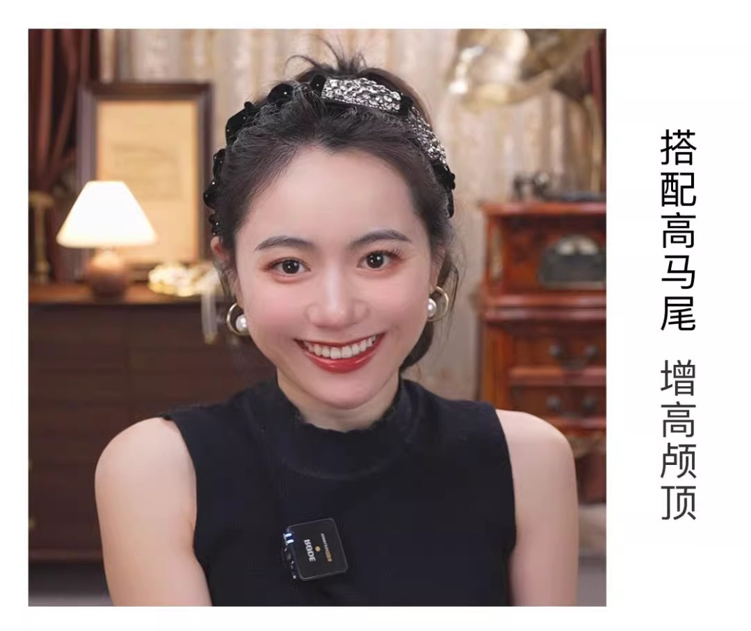 黒の歯付きカチューシャ女性は日常的に高頭トップをつけています。