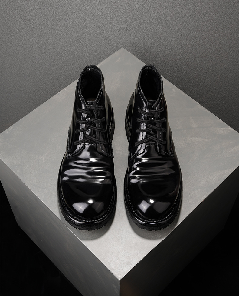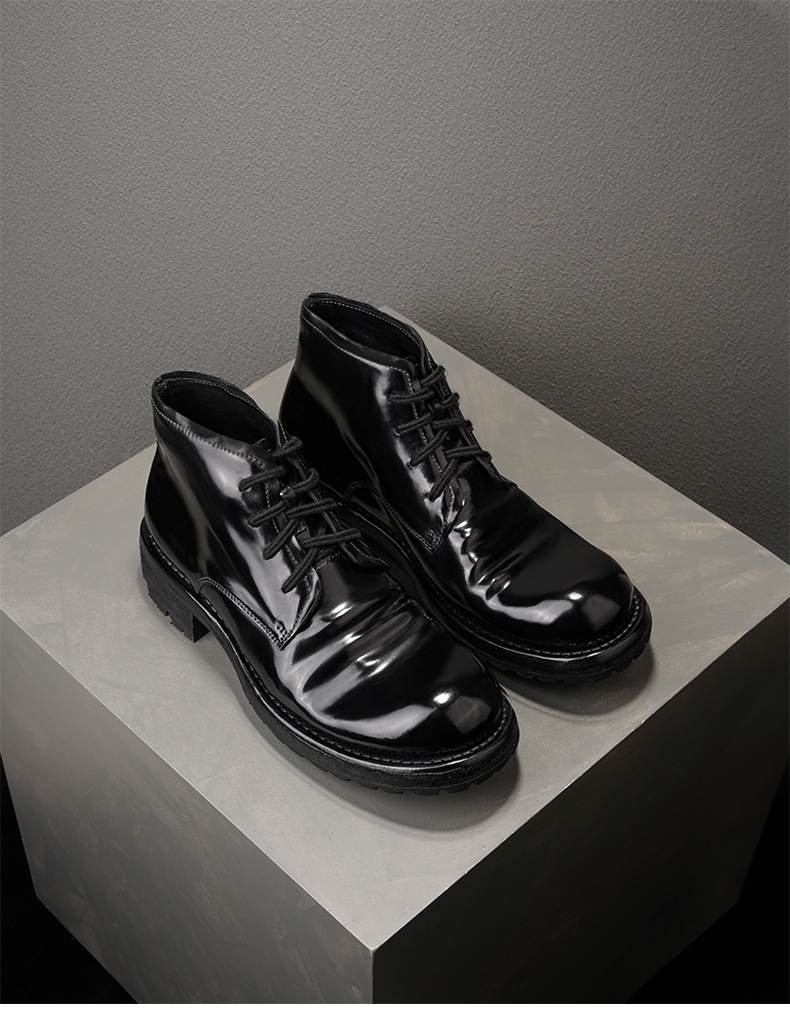 高端皮底男士复古工装真皮马丁靴时尚做旧水洗马皮固特异缝合耐穿