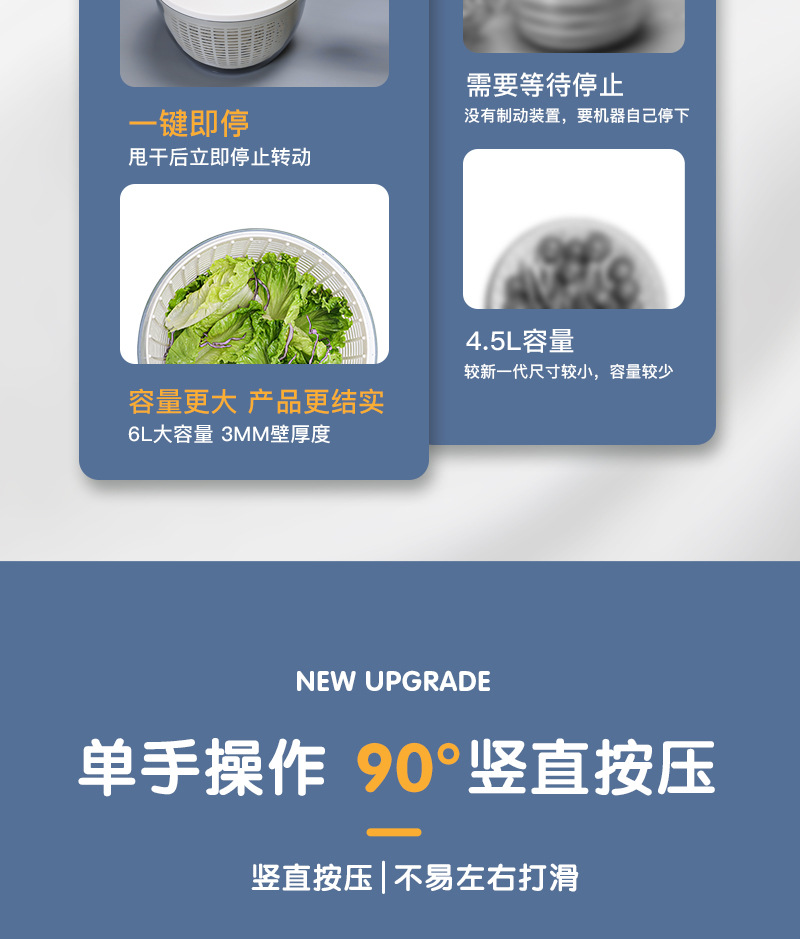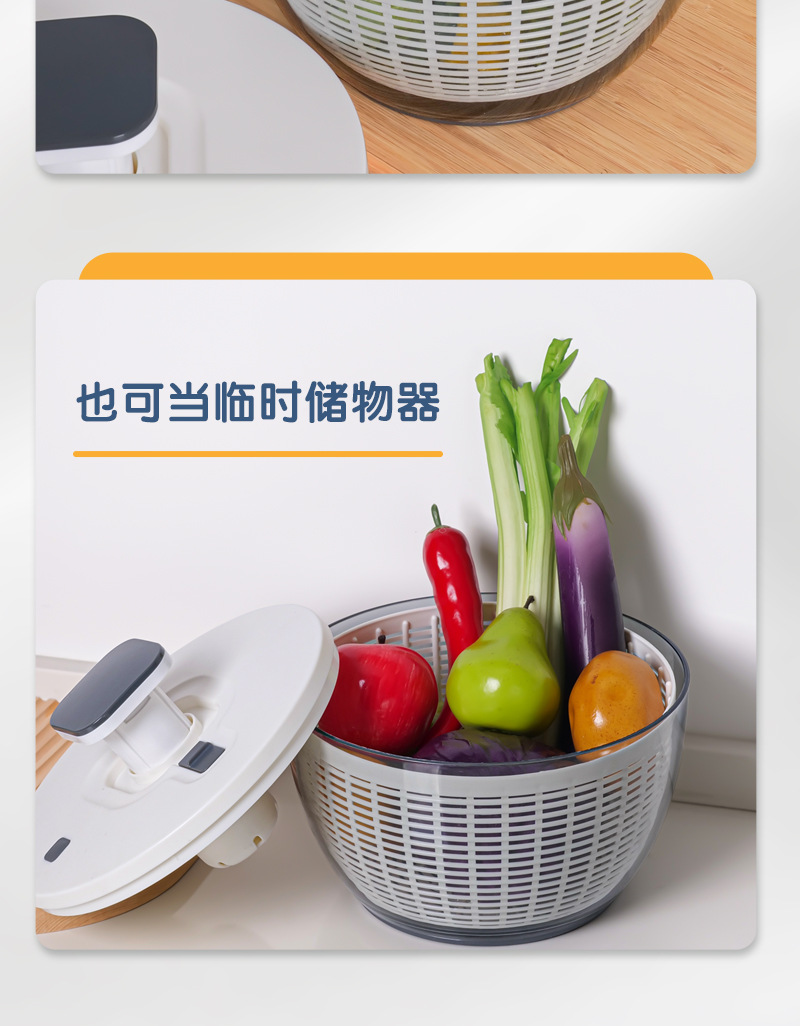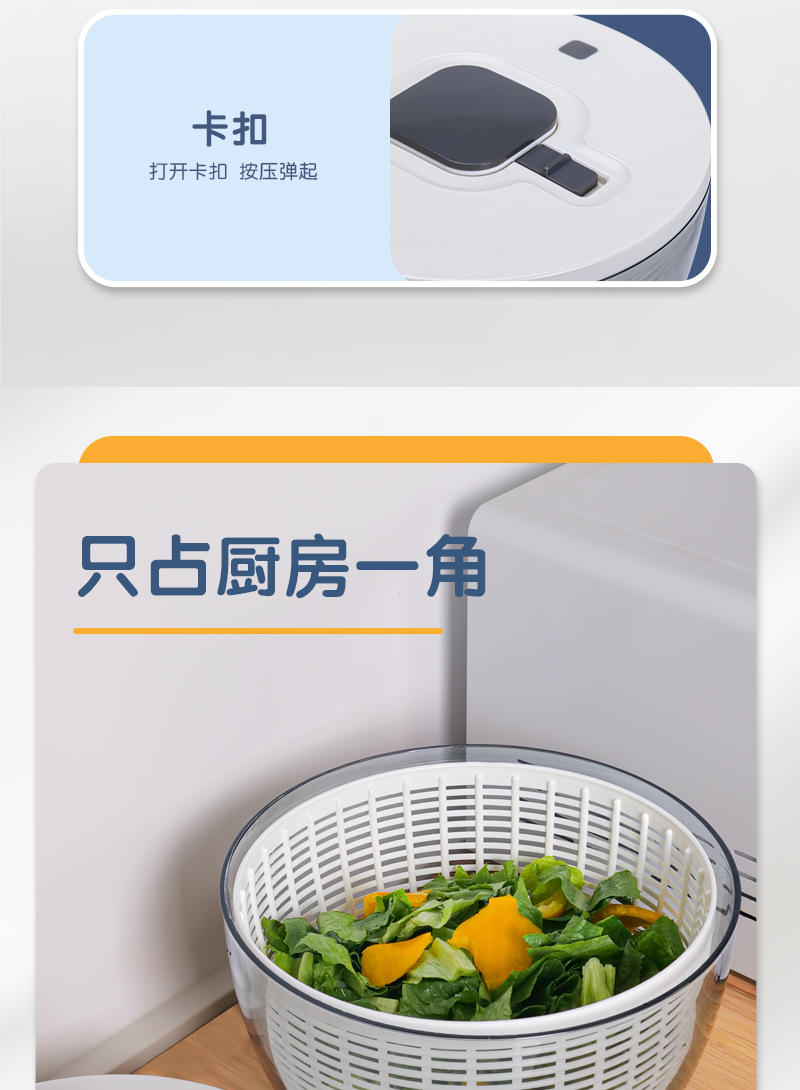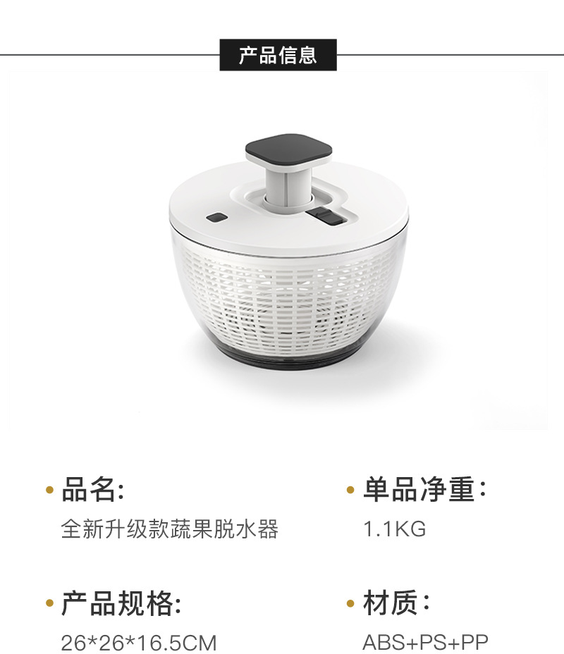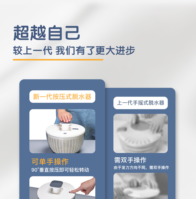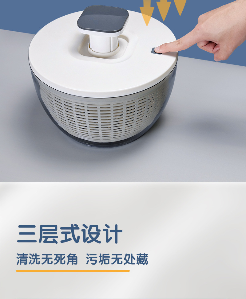 按压式蔬菜脱水器甩干机家用沙拉甩菜器手动果蔬甩水器旋转沥水篮