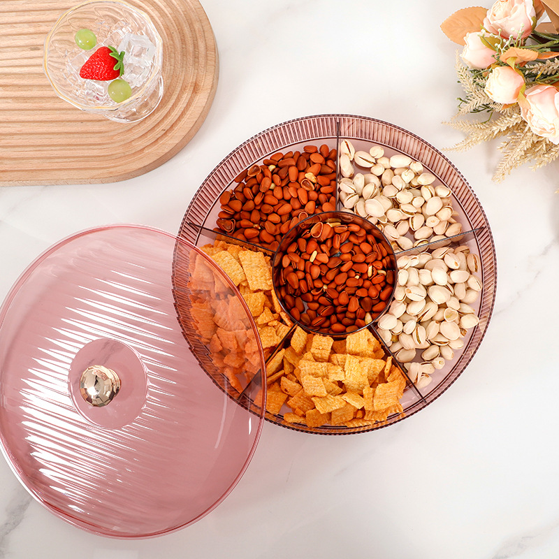 新商品の透明で軽い贅沢な蓋付きの果物皿家庭用リビングルームの大容量のキャンディー箱の分格スナックの果物皿の卸売り