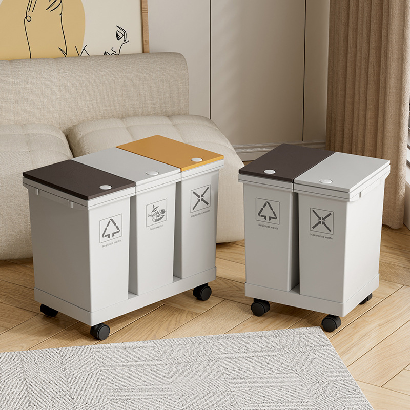 プラスチック分類ゴミ箱家庭用和式押し式ゴミ箱ごみ分類車輪付きゴミ箱卸売り