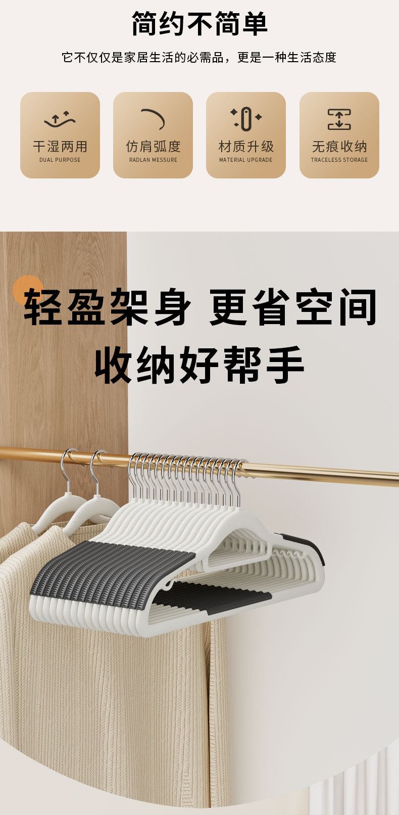 滑り止め無痕プラスチック二人ハンガー家庭用肩角防止ハンガーの乾湿両用クローゼット収納服サポート