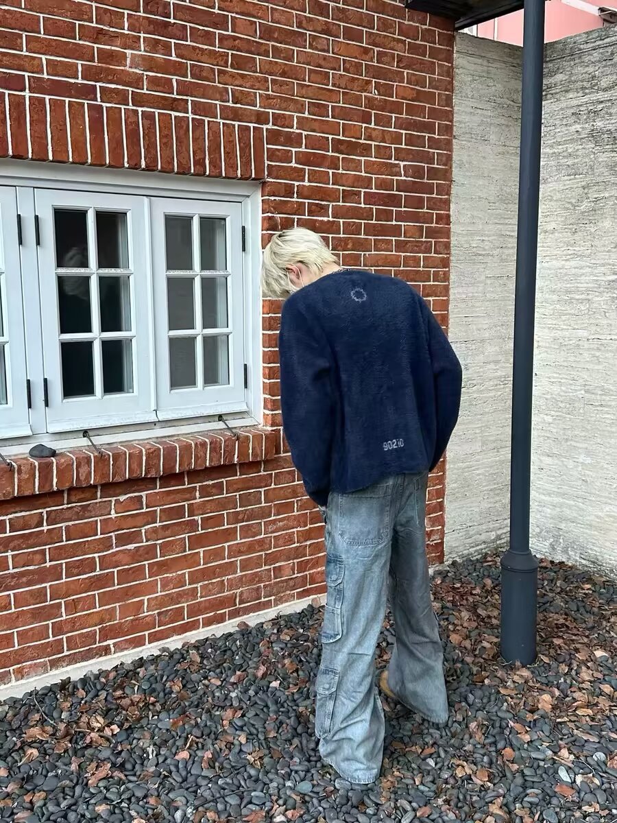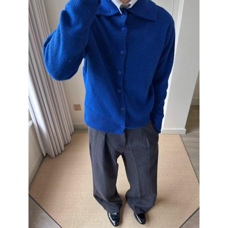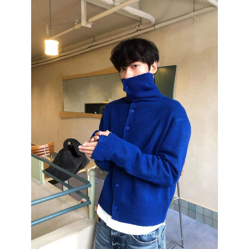 宝蓝色高领毛衣开衫外套男款秋冬韩系慵懒风氛围感保暖打底针织衫