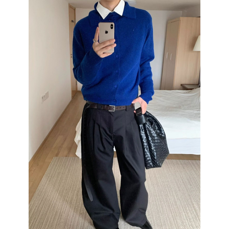 秋冬宝石蓝慵懒氛围感软糯高领毛衣男女同款休闲百搭纽扣针织开衫