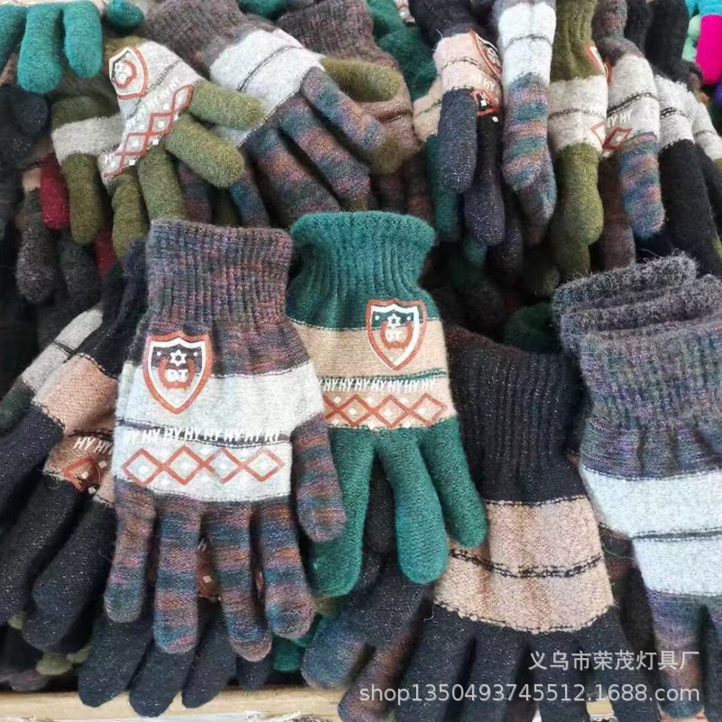 男士保暖手套针织提花图案手套冬季加厚防寒毛线棉纱分指批发