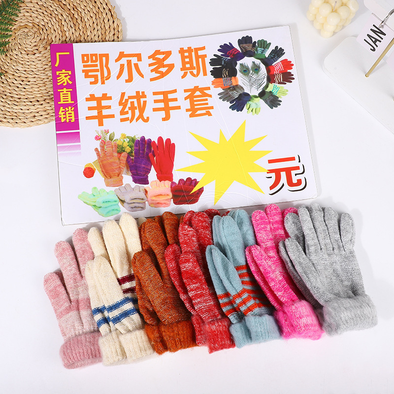 地摊羊绒手套保暖手套摆摊加绒加厚成人手套女士冬季手套针织手套