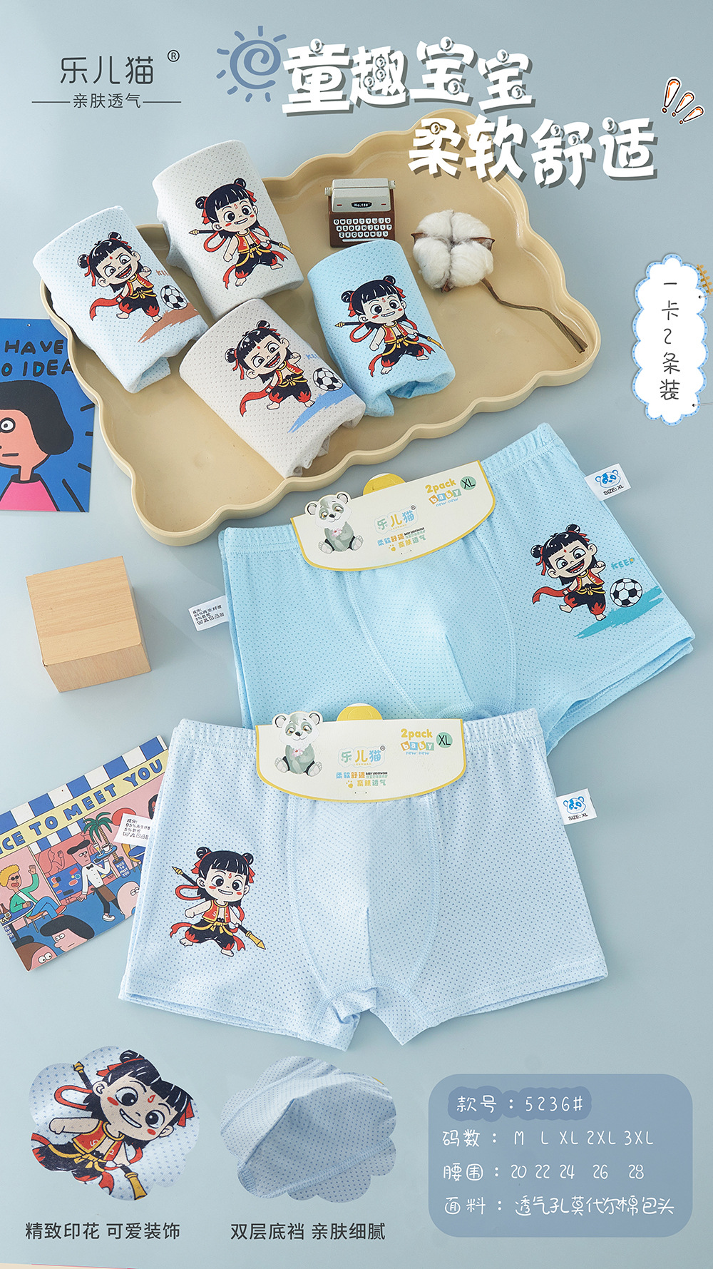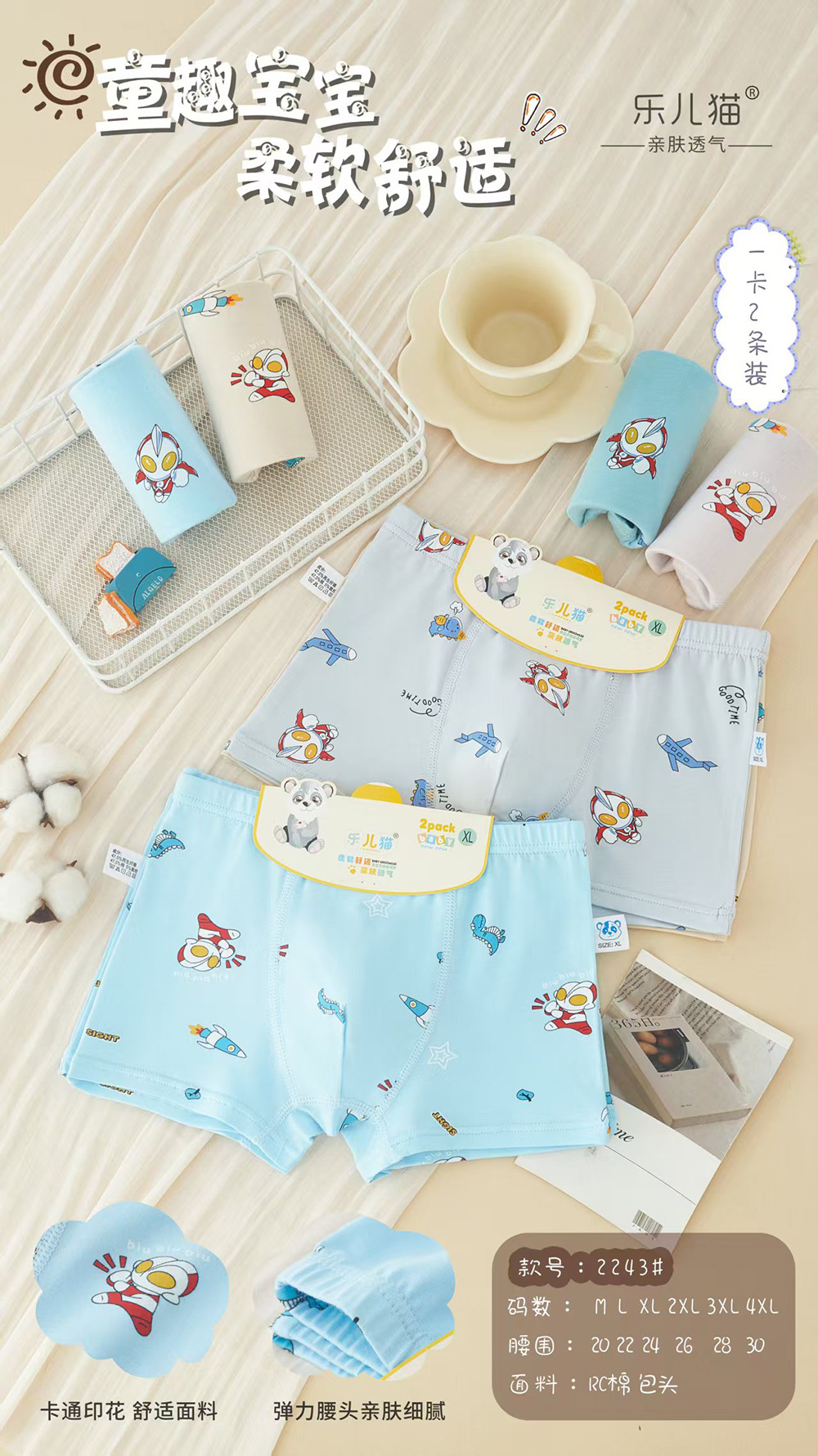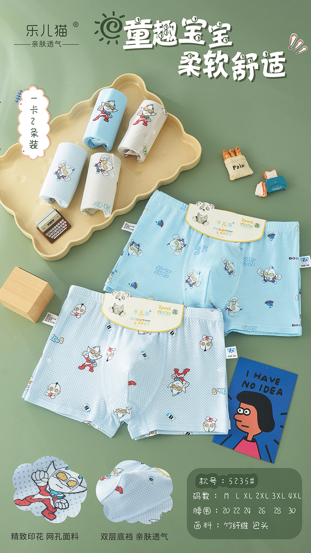 2025春夏新作、漫画柄子供用下着卸売、平角ショーツ、綿素材、小・中・大児向け