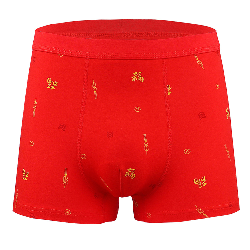 本命年紅下着大紅幸運プリント綿男性下着プレゼント結婚四角平角下着頭卸売り