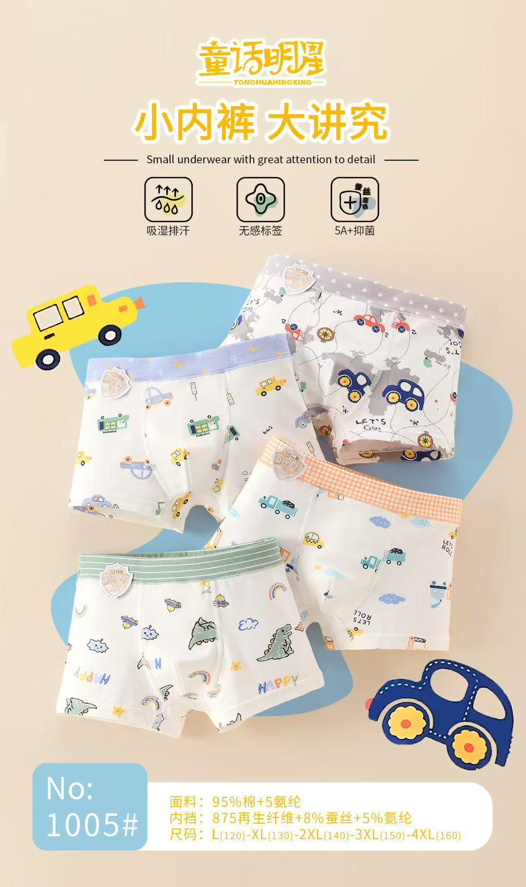 子供用下着 男の子 女の子 綿製 漫画プリント 花柄 輸出向け子供服 格安供給 ボクサーパンツ