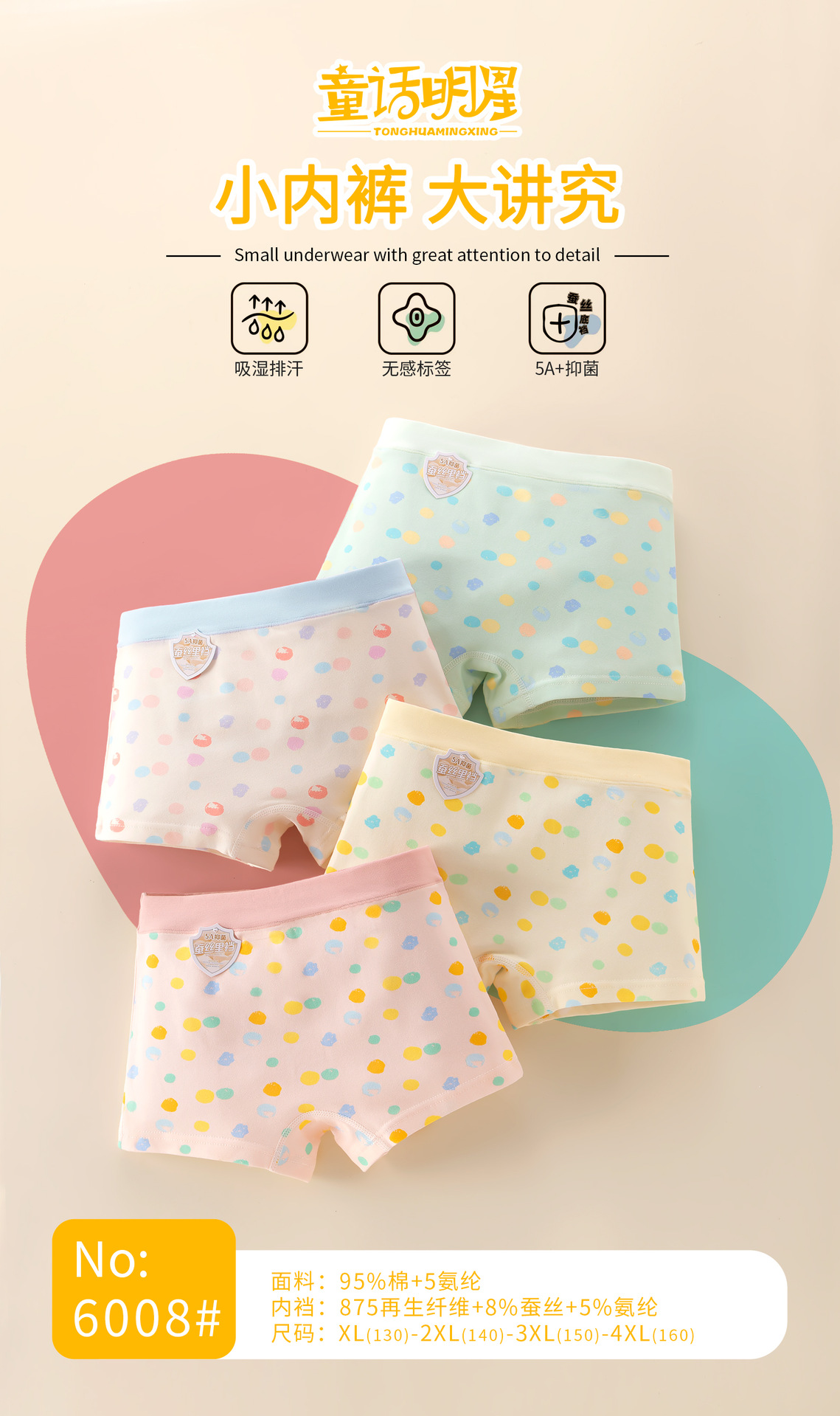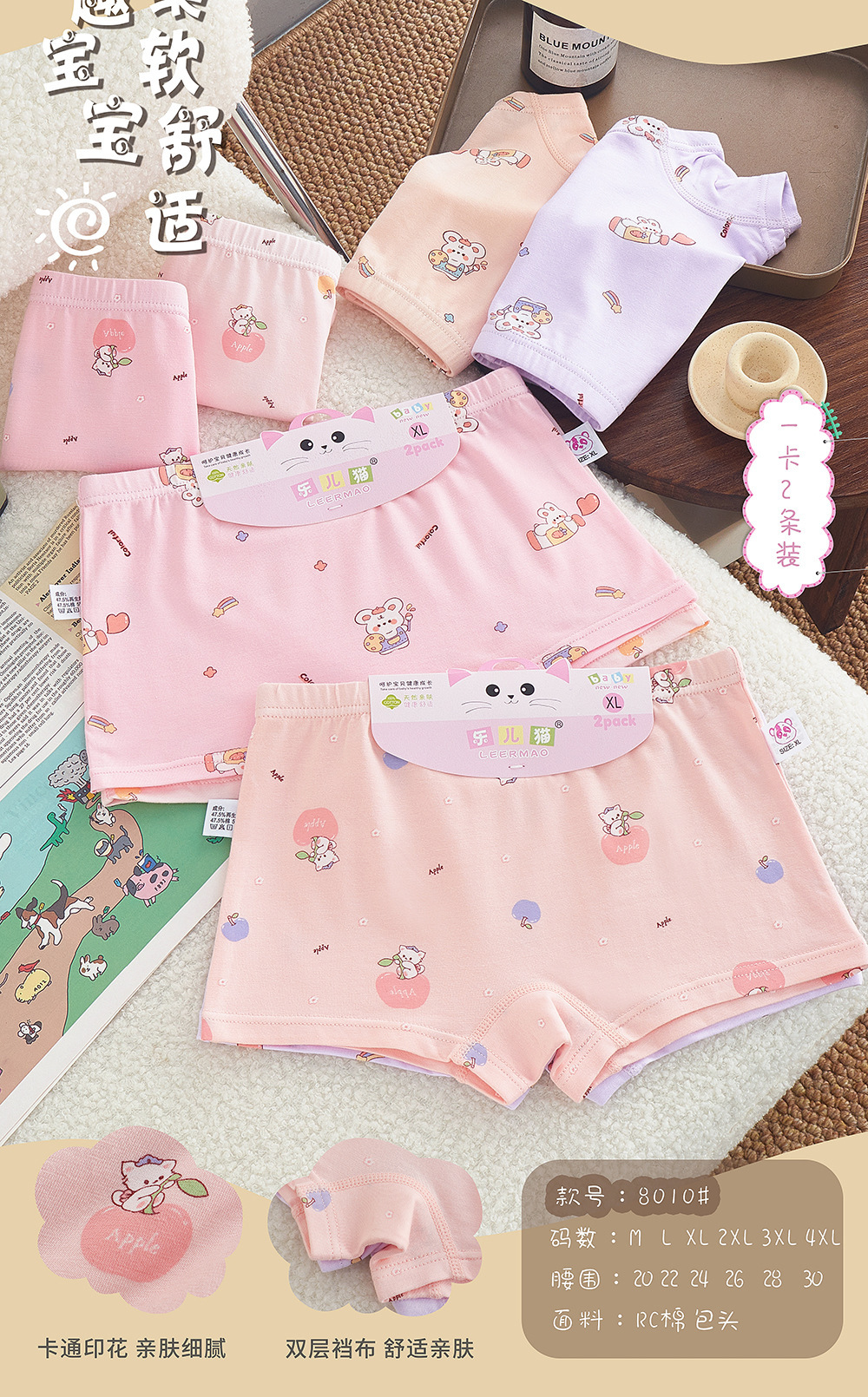 女児用下着、女の子用ボクサーパンツ、幼児用四角パンツ、三角パンツ、女児用綿ショーツ、中高生用綿ショーツ、夏用純綿下着