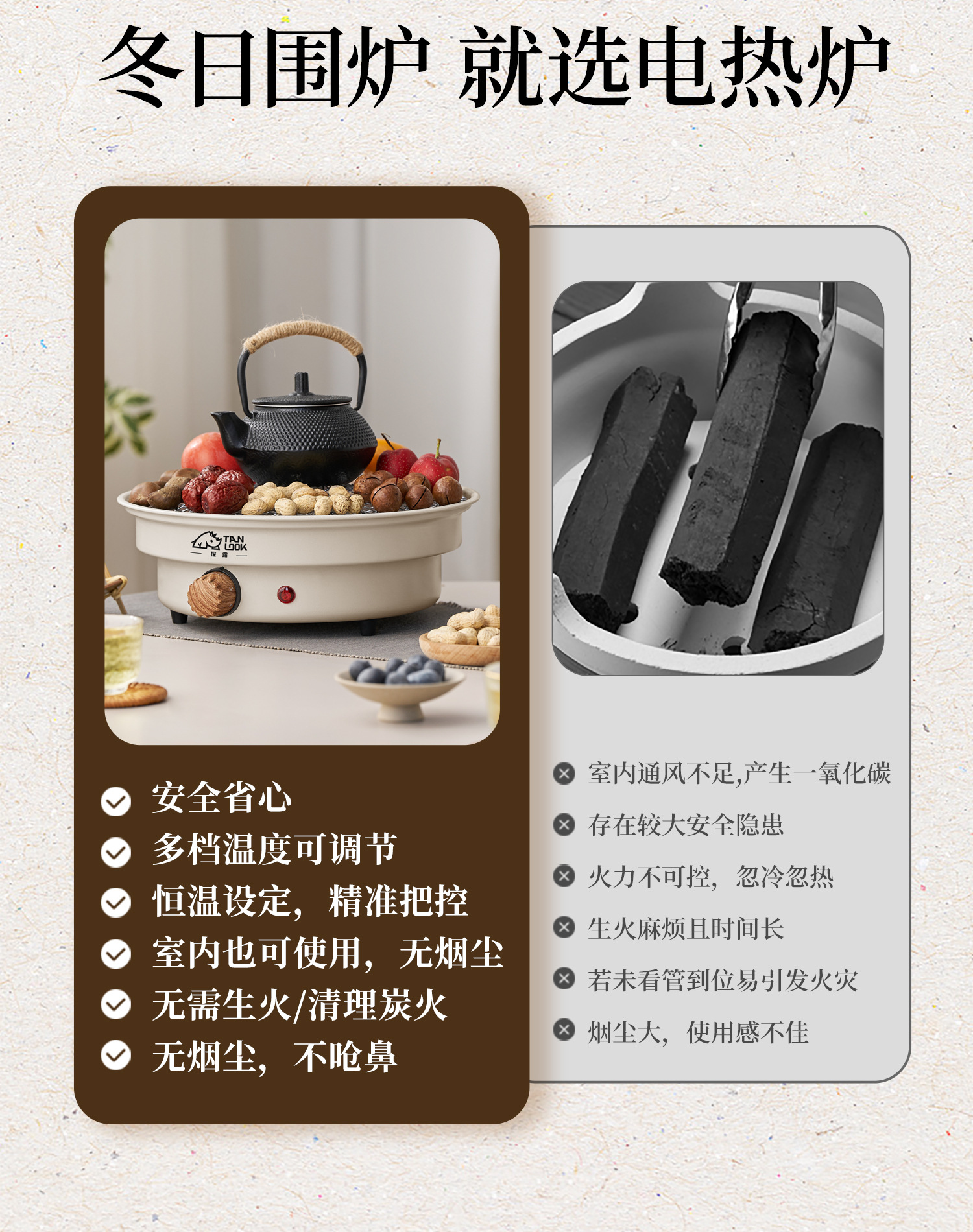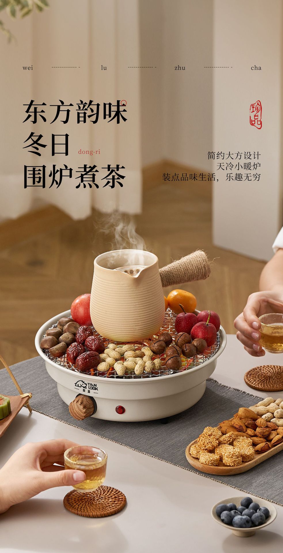 冬天围炉煮茶电碳两用陶炉子炭壶取暖家用室内器具家庭电烧烤火炉
