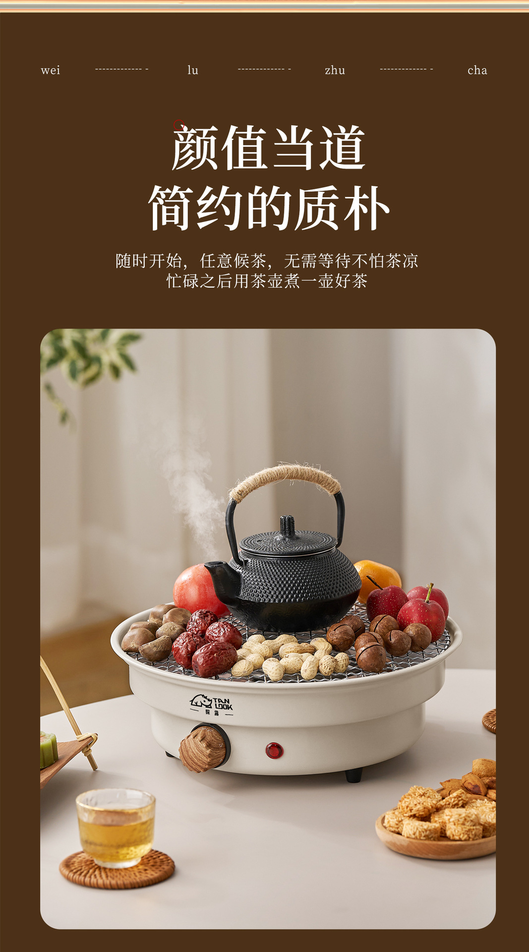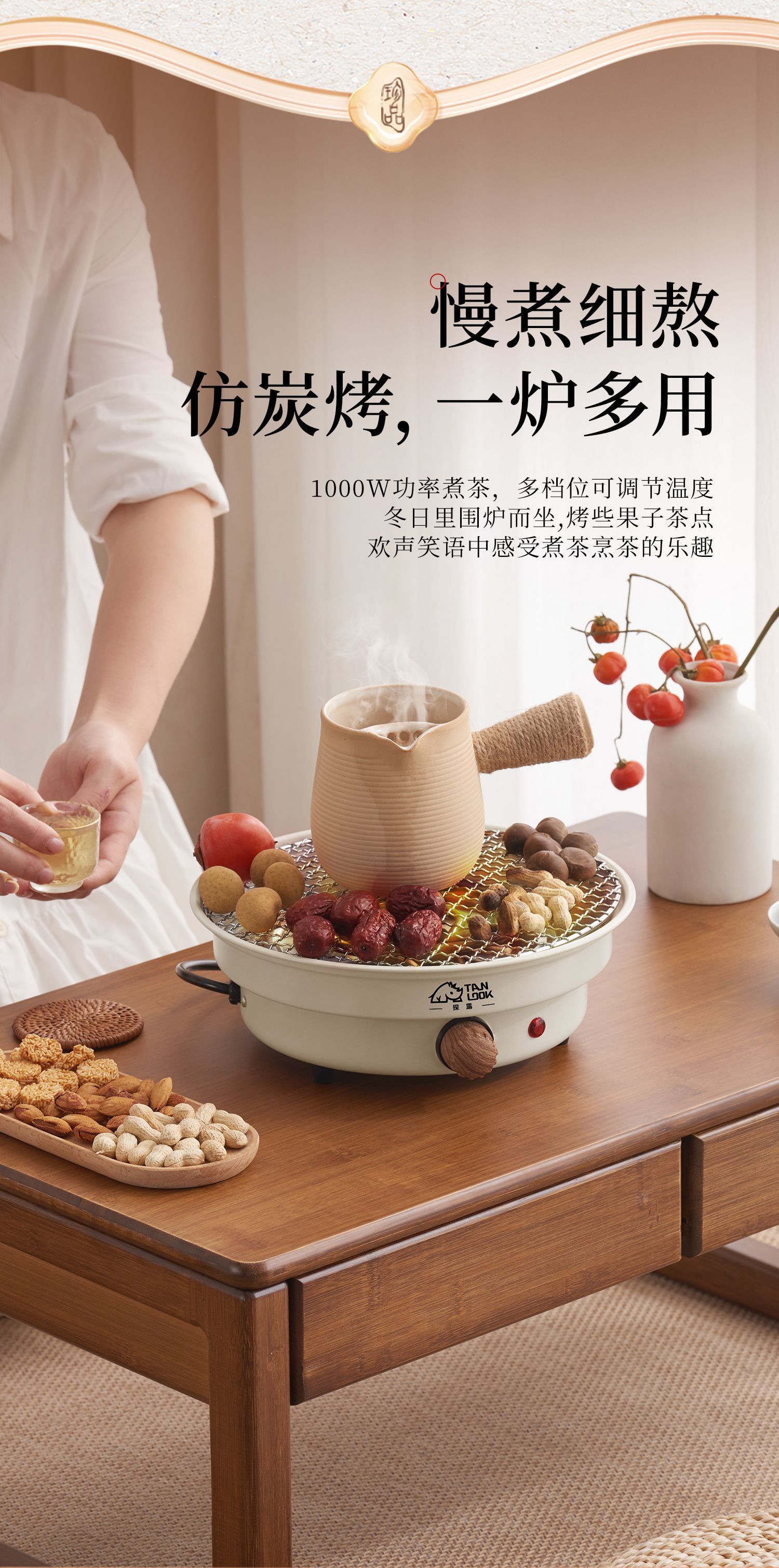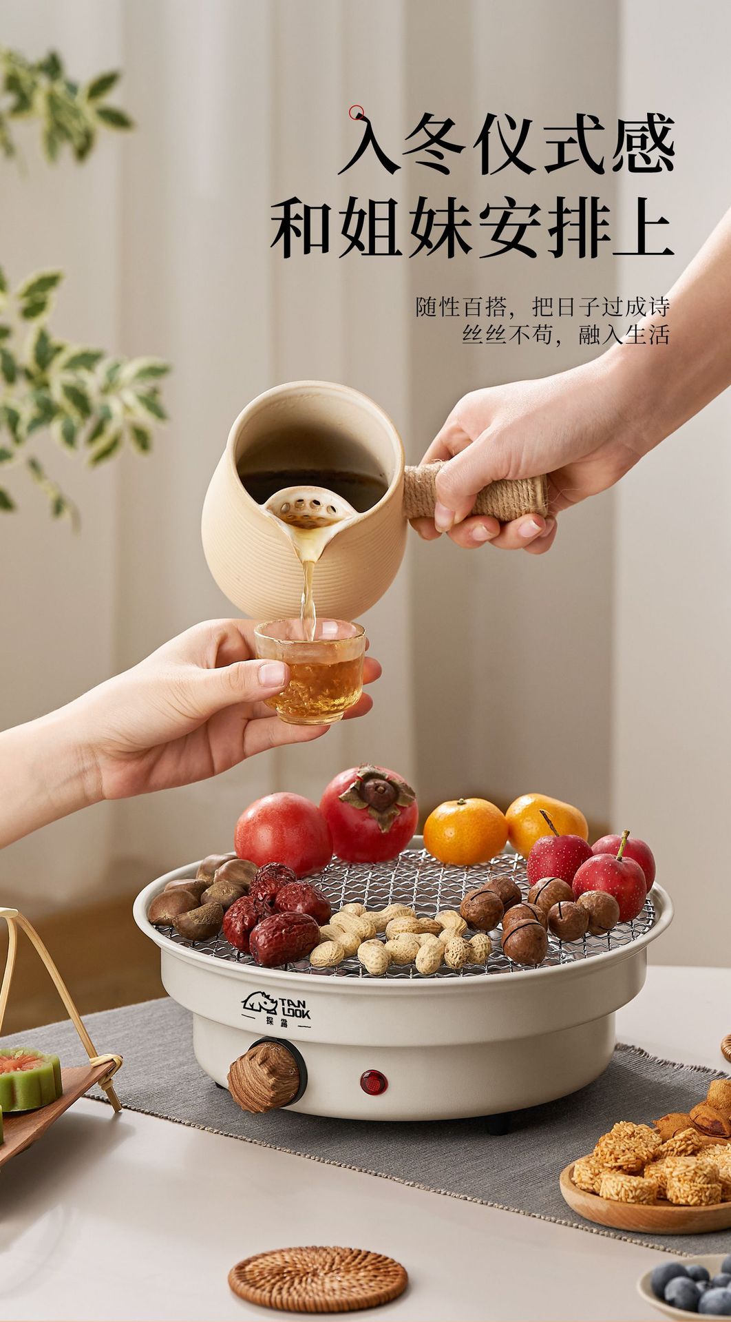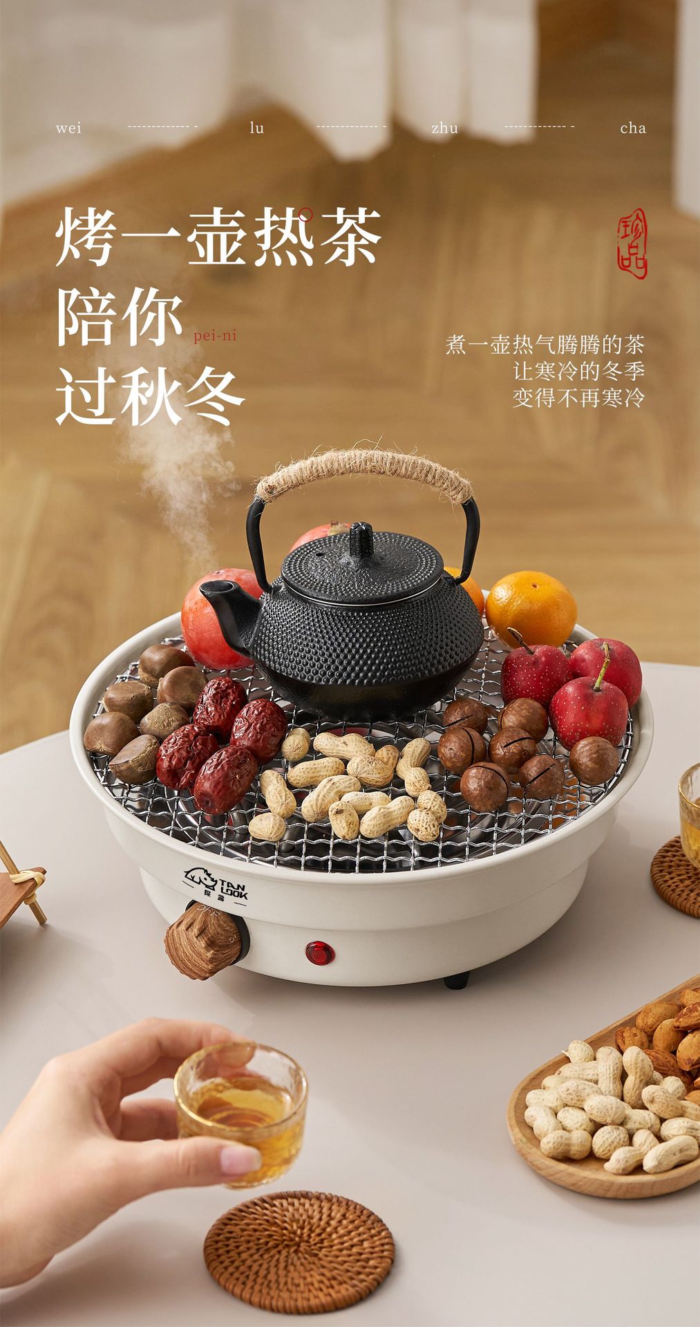 奥然囲炉煮茶器電気陶炉家庭用小型焼き火鉢焼き芋多機能焼きグリルストーブ