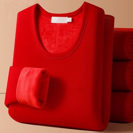 幸運の年男性用保温下着、厚手で裏起毛、結婚式用赤い秋服・秋パンツ、男性用冬服セット