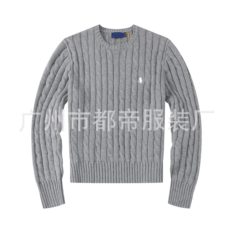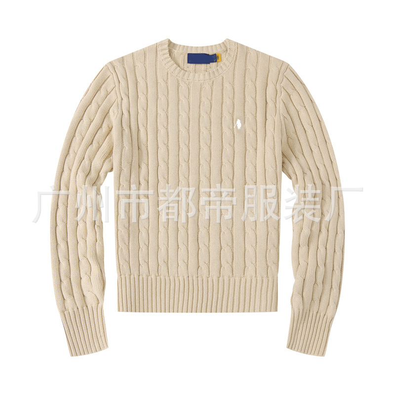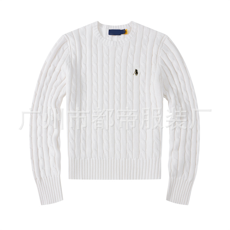国境を越えた対外貿易女装刺繍ポニーポロPOLOセーター丸首純綿麻花ニットジャケット