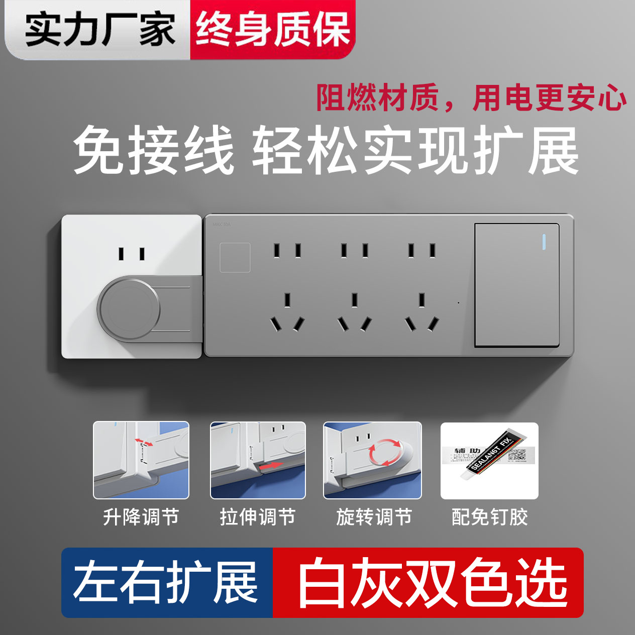 86型表面実装拡張コンセント、マルチプラグ、1対多コンセント変換器、スイッチ付きコンセント、配線付きパネル