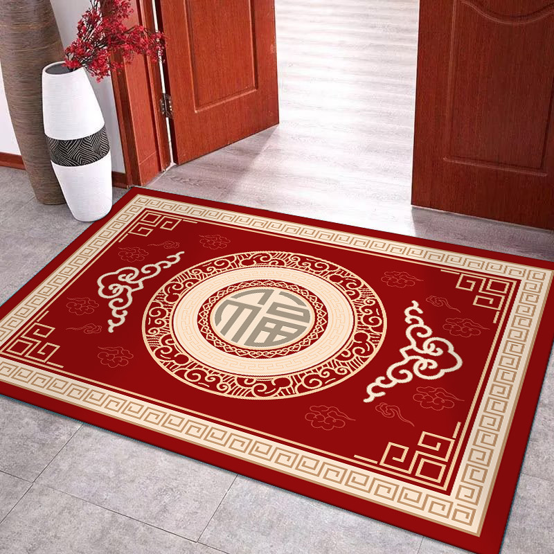 中国古典風玄関マット、汚れに強くお手入れ簡単、玄関ドア用滑り止めクリスタルベルベット、滑り止め・耐摩耗性