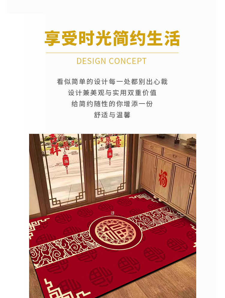 中式古典风入户门地垫耐脏易打理脚垫玄关门口防滑水晶绒防滑耐磨