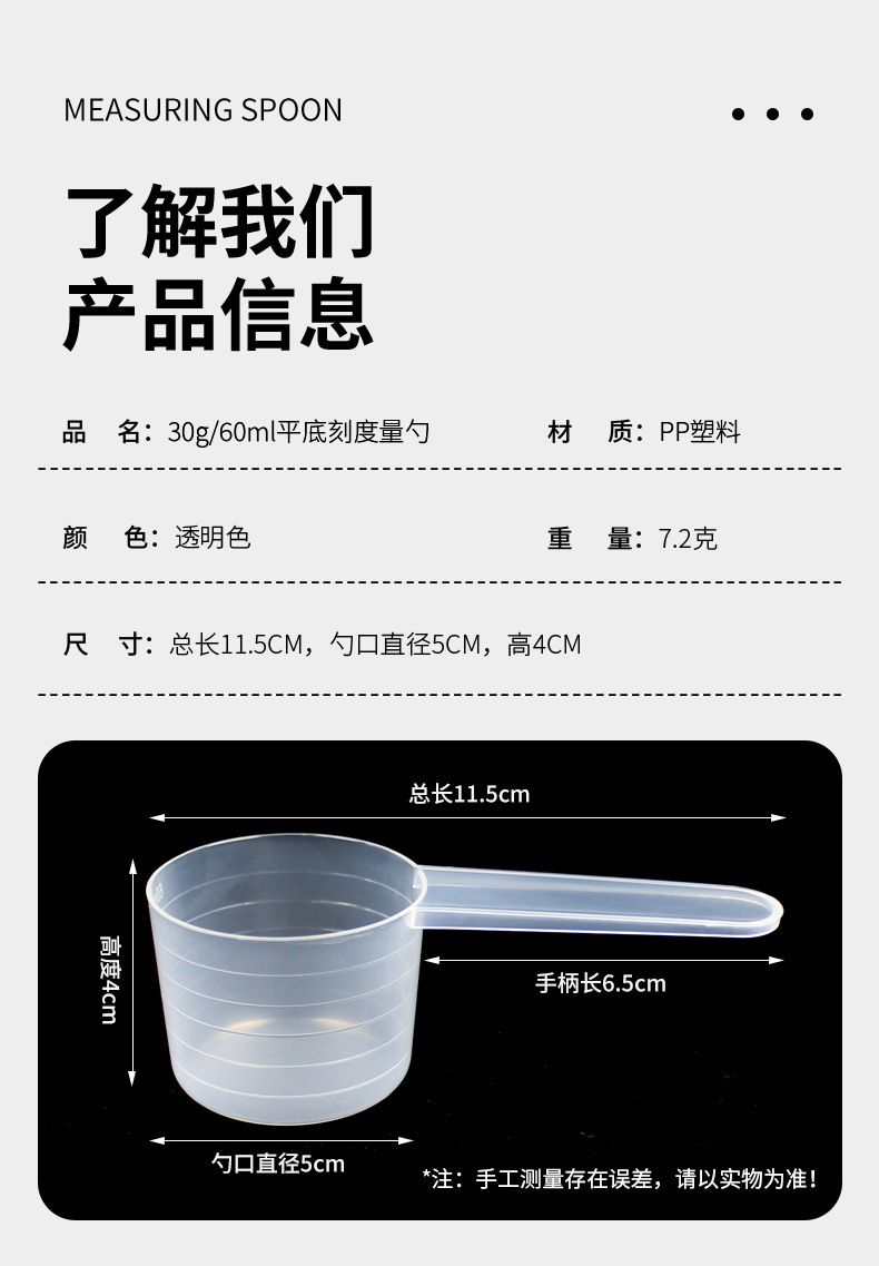 メーカー卸売高透ppスプーン30グラム60ミリリットル粉末スプーンスケールスプーン液体プラスチック計量スプーンタンパク質粉末スプーン