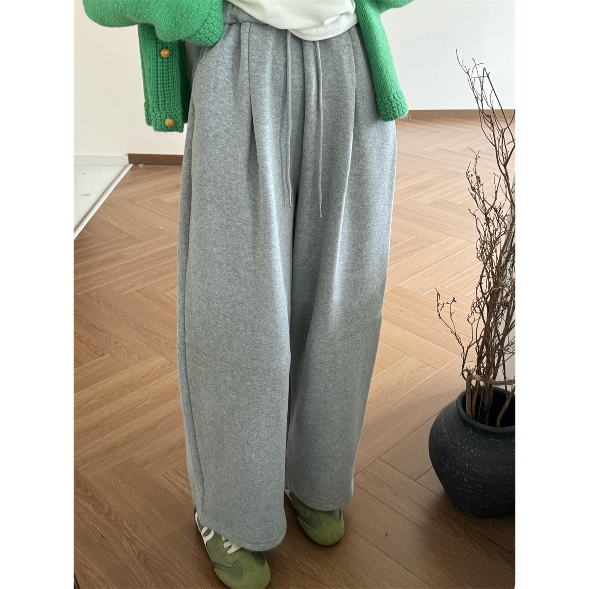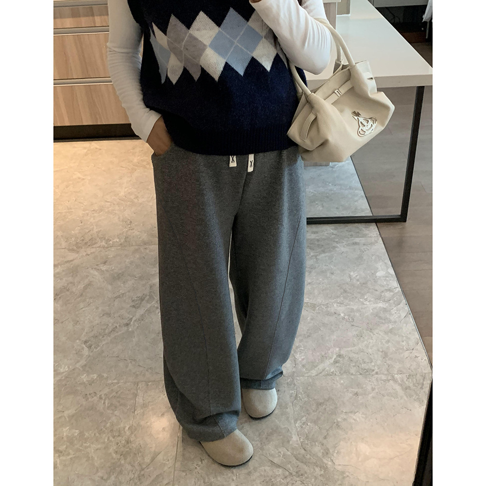 秋冬孕妇宽松休闲长裤孕妇麻灰阔腿裤孕妇大码抽绳腰休闲卫裤加厚