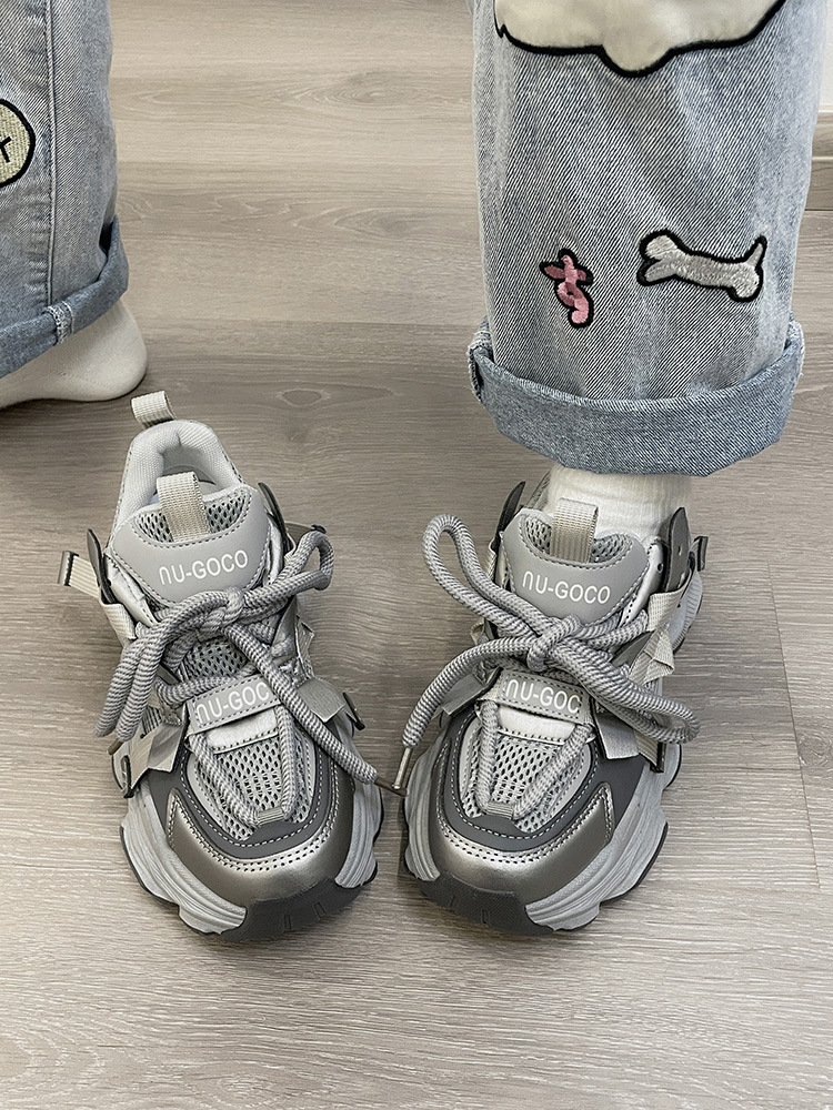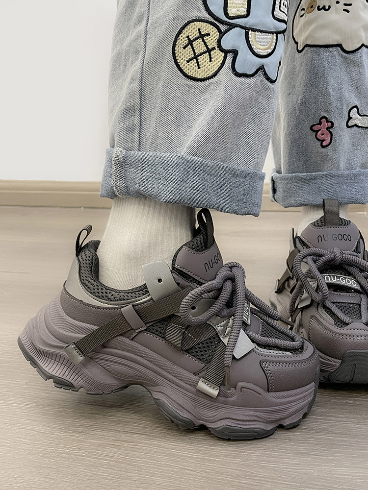 2025年春秋冬新作、厚底プラットフォーム、身長アップ効果のある、小さめ女性向けの万能カジュアルシューズ、裏起毛ダッドスニーカー