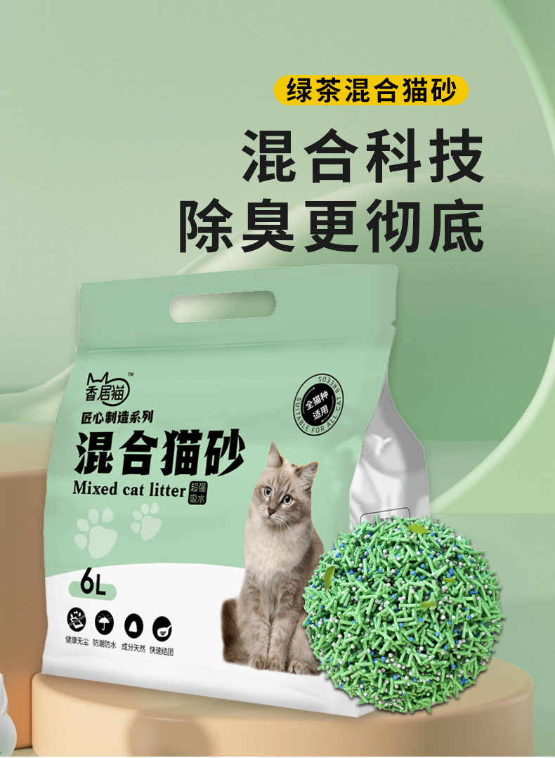 緑茶味豆腐猫砂6l消臭クリーン植物猫砂吸水強結球快速結団メーカー卸売り