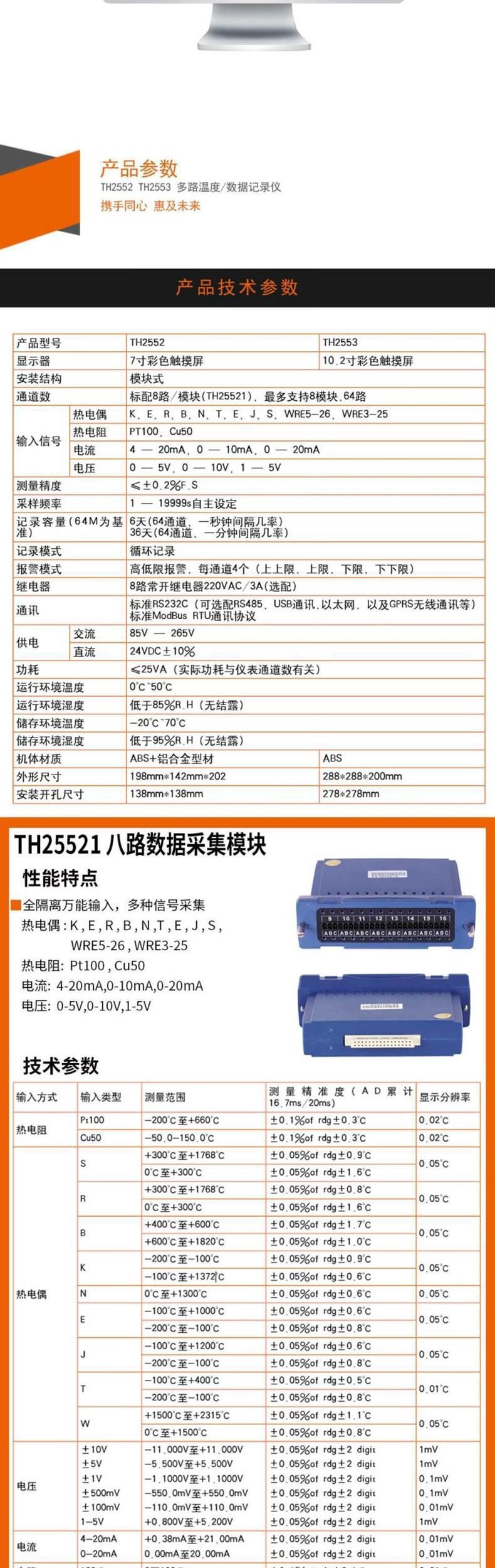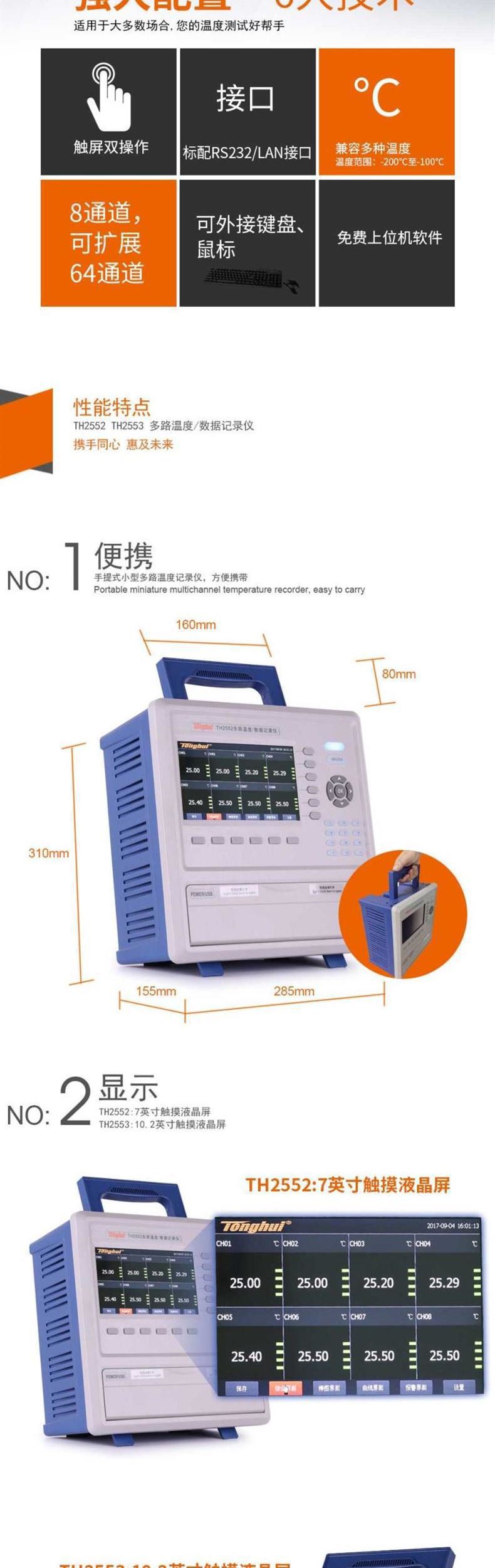 同惠TH2552 TH2553多路温度记录仪/巡检仪8通道温度数据采集仪