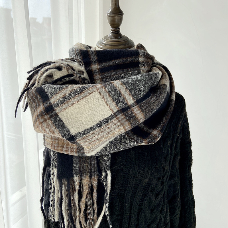 爆金千鳥格が厚い格子マフラー女性韓系百合ストール高級感冬学生保温マフラー